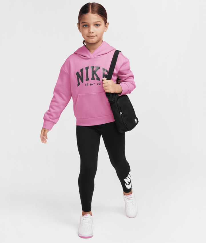 Made of soft stretch cotton jersey, these leggings fit snug yet are comfy enough for kids to play freely in. They have a comfy elastic high rise waistband for a flattering look to finish this wardrobe essential that not only complement your kiddo's Nikes, but they pair perfectly with any Nike top for a coordinated look.