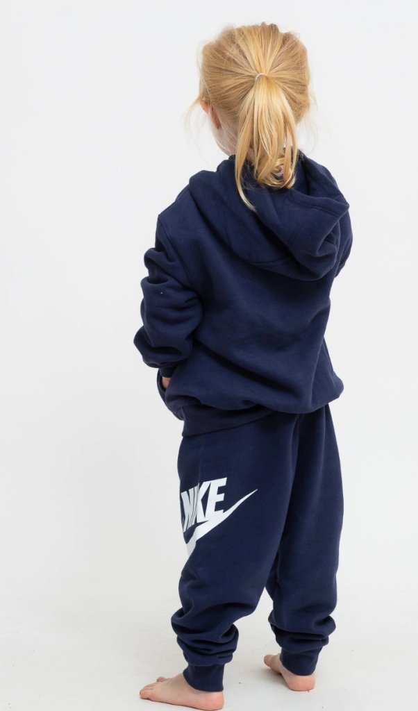 Are you looking for a simple way to dress up your little one? This two-piece set is just what you need. The Nike Hoodie offers a roomy fit for easy layering, while the matching tapered trousers have an elasticated waistband for a comfortable fit. Both panels are made of soft and lightweight fleece for maximum comfort. 60% cotton, 40% polyester
