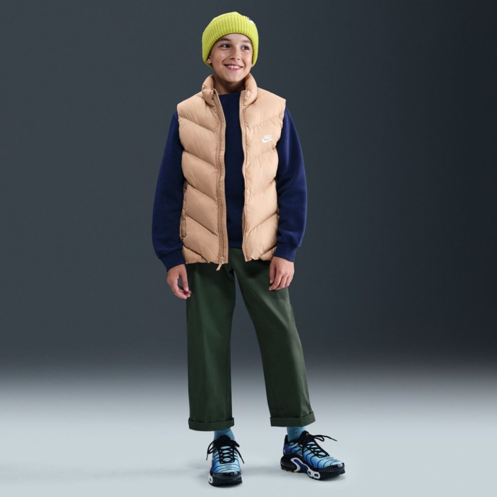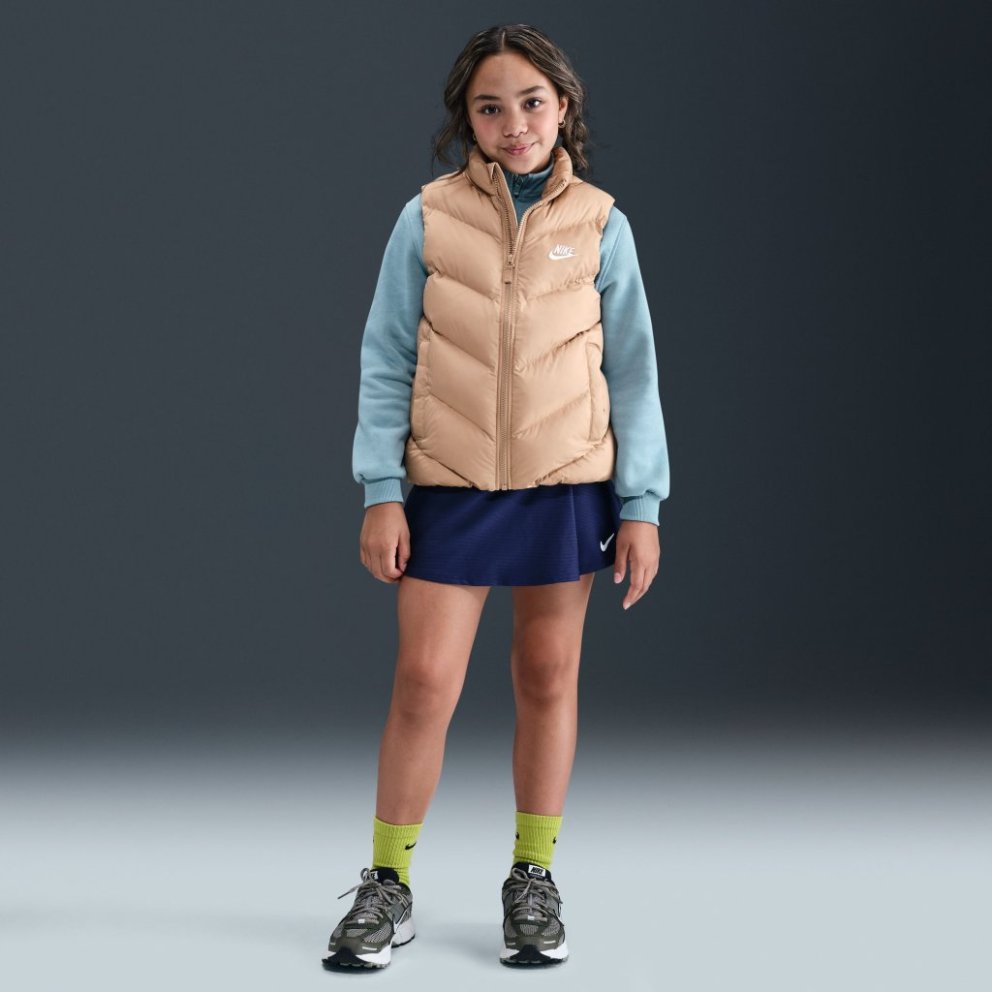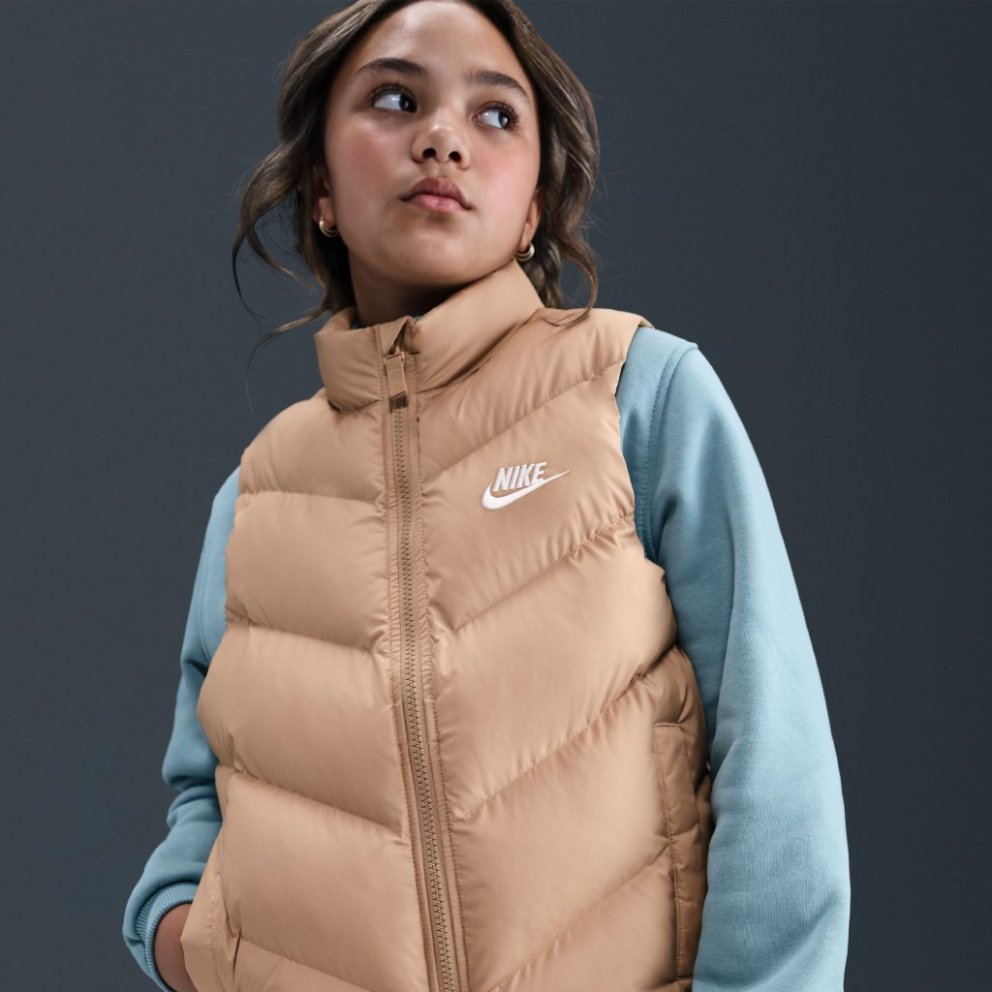 A chevron pattern on the front of this puffer nods to the Nike Windrunner, one of the first pieces of apparel we ever made.
