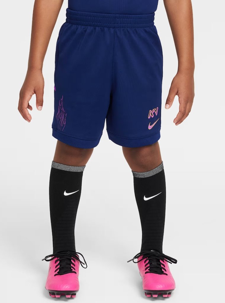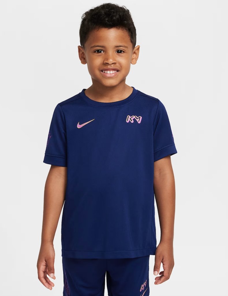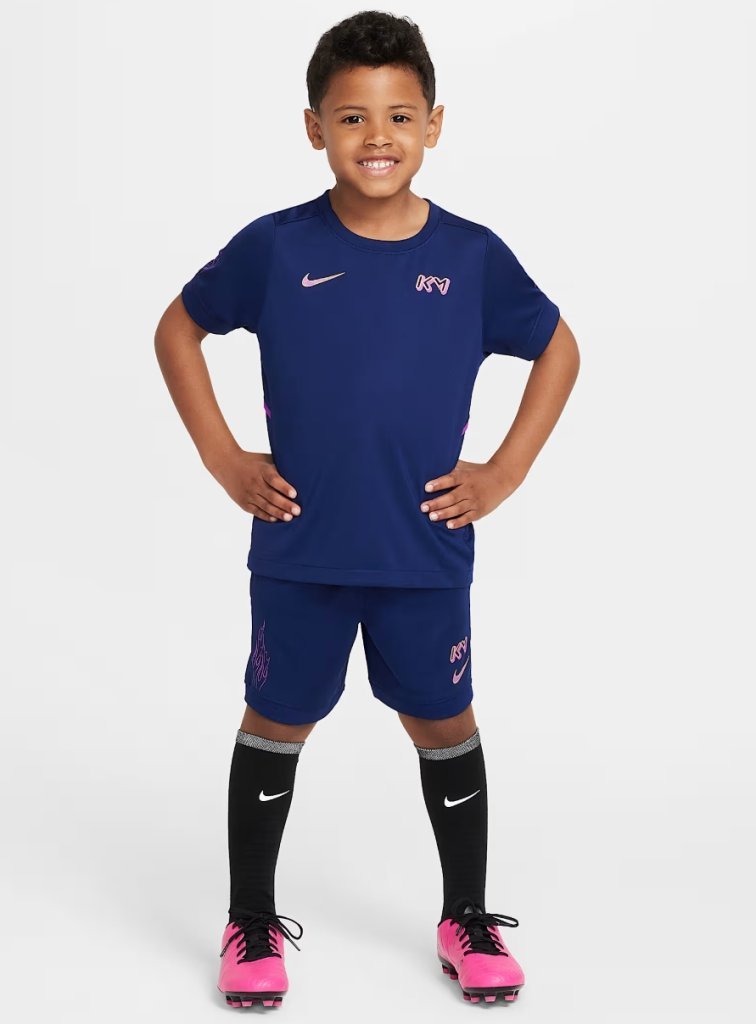 Kids can bring the heat while repping their favorite soccer player, Kylian Mbappé, in this 2-piece set. Both pieces are made of recycled poly knit fabric enhanced with quick-drying, moisture-wicking, Dri-FIT technology to help littles stay cool and dry while they speed down the pitch or around the playground. The top has a tagless crewneck for easy wear with a mesh back and sides for extra cooling. The shorts have a stretch waistband as well as mesh insets for extra breathability and comfort. Benefits:
