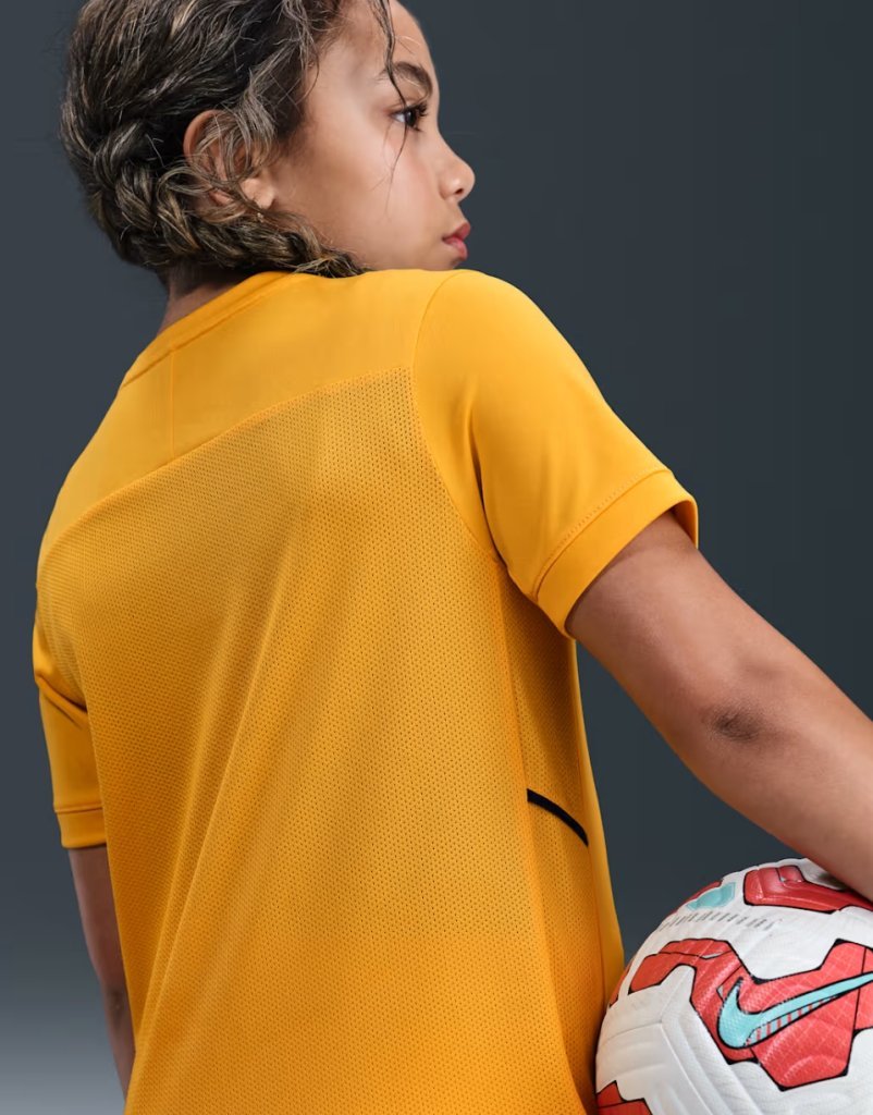 On the pitch, Erling Haaland is relentless and fearless. And he needs a kit that can match his intensity. This lightweight knit top uses our sweat-wicking Dri-FIT technology and mesh side panels to help him stay cool as he torches the pitch.