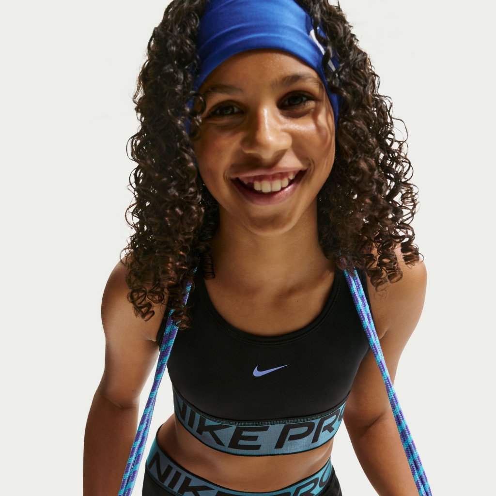 Play with style and confidence in this soft, supportive Nike Pro sports bra. Sweat-wicking Dri-FIT technology and a mesh "Nike Pro" band help you stay cool and comfortable while you're on the move.