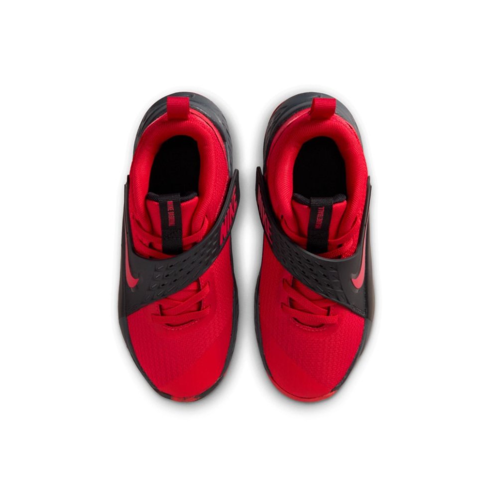 The Nike Team Hustle D is made for kids who love to hoop. Stretchy elastic laces and a strap closure make it easy for kids to secure their fit. Underfoot, plush foam and a durable rubber outsole give them the cushioning and grip they need to confidently play on outdoor courts. Easy to secure Stretchy elastic laces pair with a hook-and-loop strap to help give kids a secure, contained fit. We added oversized loops to the tongue and heel to help make these easy to pull on. Tarmac ready A flexible, full-length rubber outsole offers the durability and grip kids need to bring their best on outdoor courts and playgrounds. Plus, soft foam in the midsole cushions every step and jump they take. Keep cool Breathable mesh in the upper helps keep little feet from overheating. Product details: