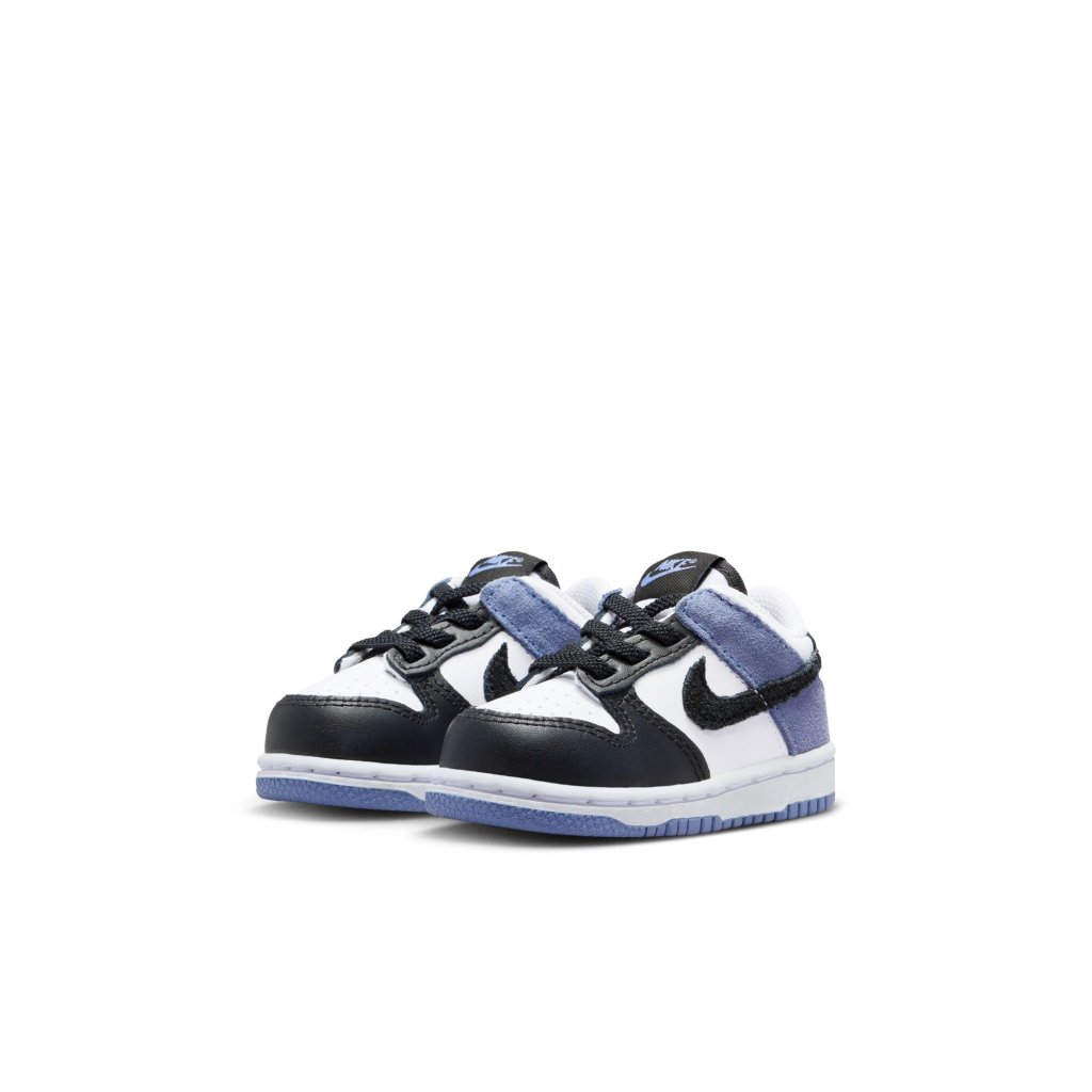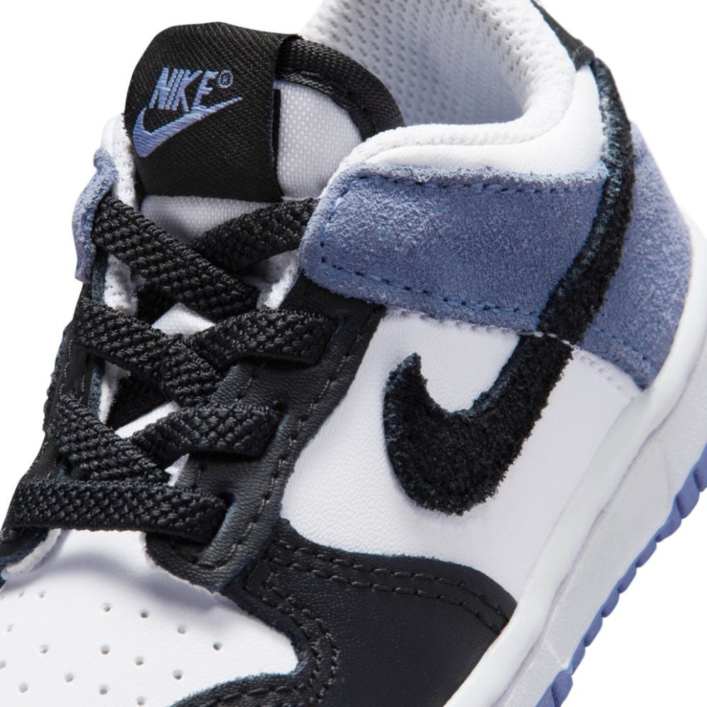 Bættu klassík í safnið þitt. Nike Dunk, sem var táknmynd níunda áratugarins, snýr nú aftur í sérstakri útgáfu með sléttu leðri sem veitir vandað útlit og áferð. Staflað Swoosh-merki, öfugar hælfl