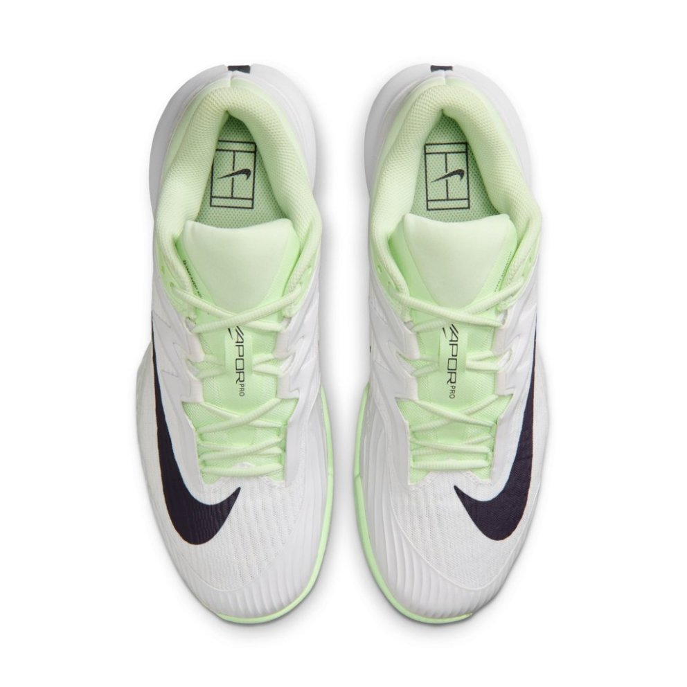 The Vapor Pro 3 provides bounce and burst from side-to-side movements to scrambles to the net, so you can stay in the point. With springy Air Zoom cushioning and a new rubber compound that makes the shoe lighter than previous Vapors, it's primed to last to match point. Forefoot flexibility The forefoot is more flexible because we shrank the Air Zoom unit and placed it where your foot feels the most impact. You still get responsive cushioning at the highest push-off point of your forefoot, but now there's more flex. Stick and cut The outsole is made from a new rubber compound that's lighter than Vapors of the past. It allows you to decelerate, plant and back into position without feeling like you're rounding off your cuts. Improved feel We kept the same midsole foam and outsole pattern you loved on the Vapor 2 and improved the secure feel around the midfoot and heel for sharper cuts. Deeper flex The supportive forefoot piece has a deeper flex notch to improve flexibility. Enhanced fit A full midfoot fit band helps you pull the laces tighter to enhance the fit and enable faster cuts. Product details *D