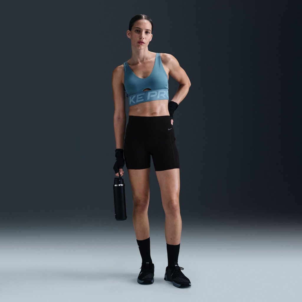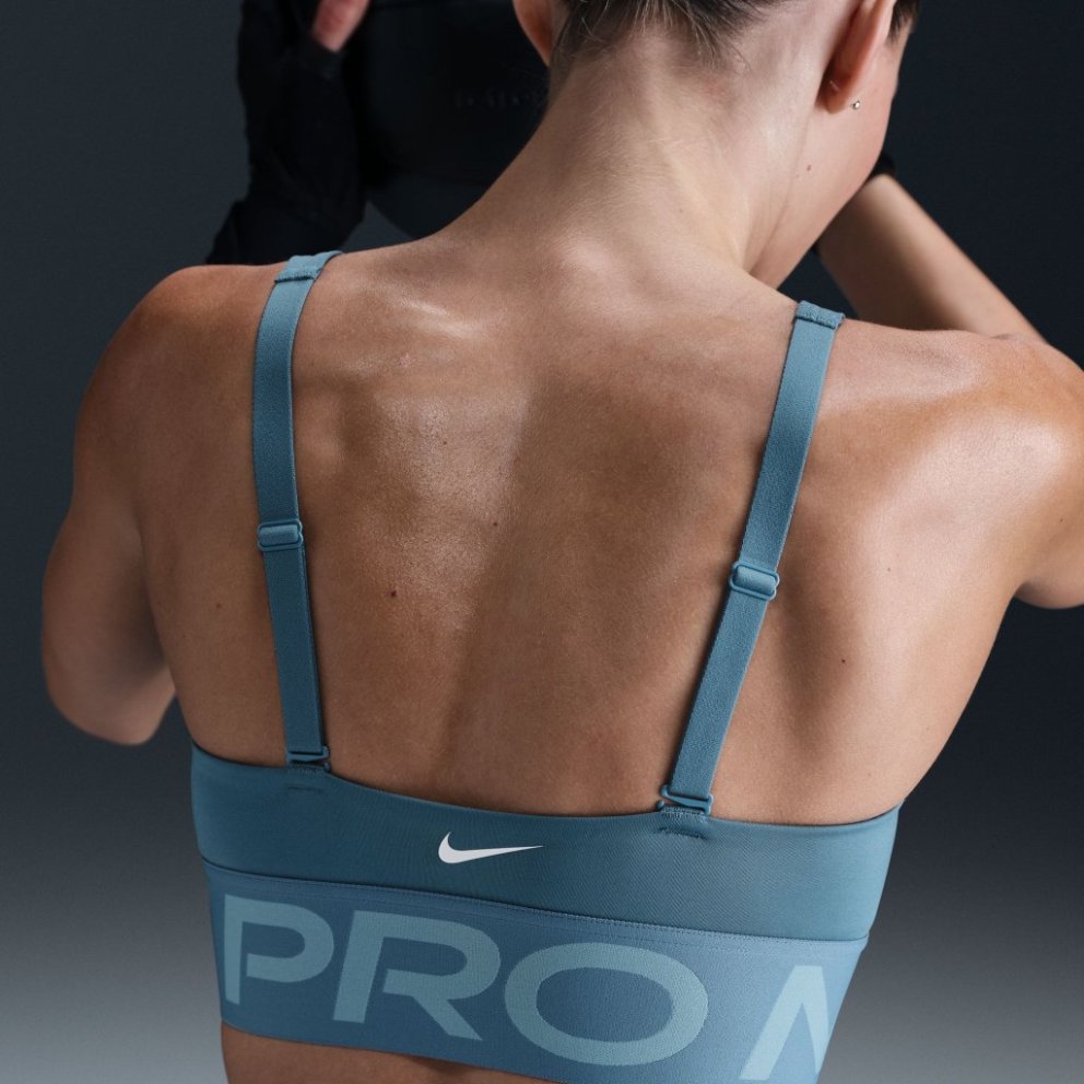Show up and show off in this bold plunging sports bra. Minimised coverage still delivers a snug hold that helps keep everything in place, so you can keep pushing yourself. Plus, convertible straps and removable pads give you the freedom to style it your way. Like a pro Unapologetic, confident style goes with anything. From leggings to tops to more, Nike Pro is ready to round off your wardrobe with pieces that help you stand out. Stay cool Nike Dri-FIT technology moves sweat away from your skin for quicker evaporation, helping you stay dry and comfortable. A cut-out on the front of the centre and a minimal silhouette offer increased airflow. Product details:
