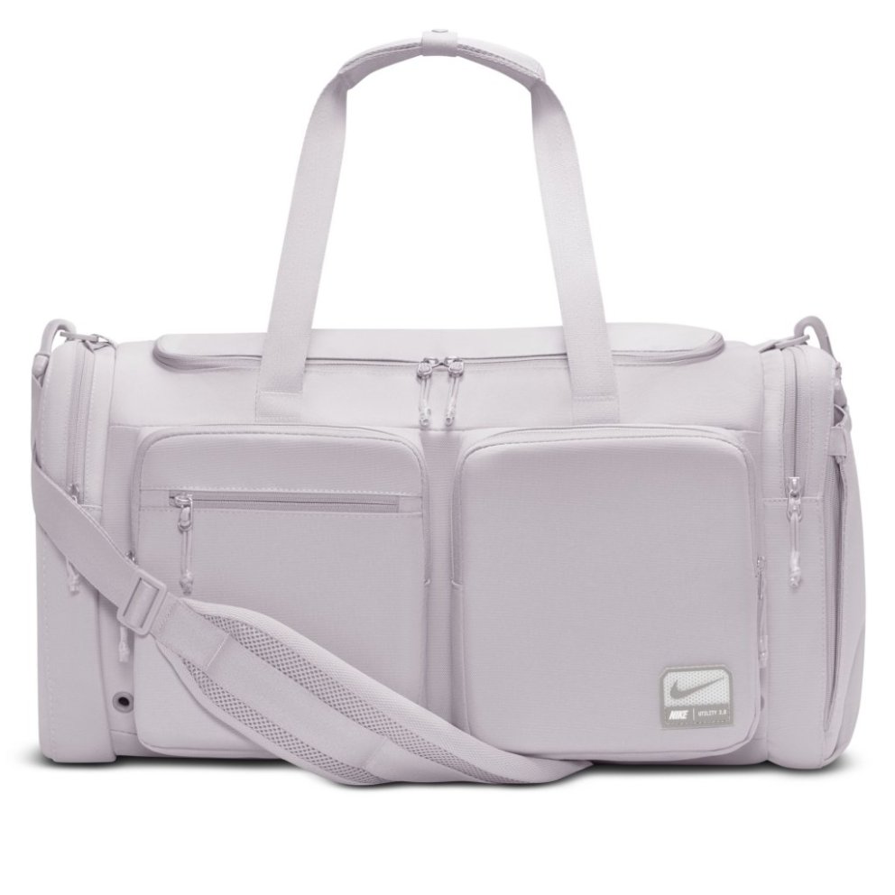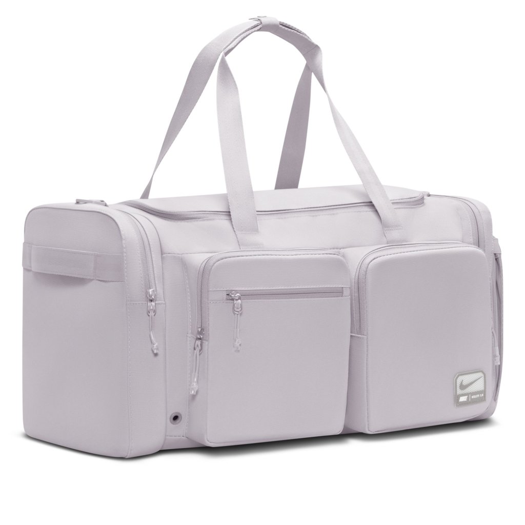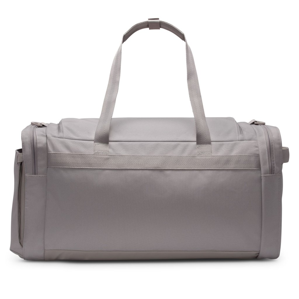 Utility Duffel taskan hjálpar þér að komast beint í æfinguna með fjölmörgum vösum sem halda dótinu þínu skipulögðu. Aðalhólfið er rúmgott og rúmar bæði fataskipti og strigaskó, á meðan ytri rennilásvasar veita fljótlegt aðgengi að smærri nauðsynjum. Stillanleg axlaról ásamt burðarhöldum að ofan og á hlið gefa þér þægilega og fjölbreytta burðarmöguleika. Þétt ofið pólýester veitir sterkan og endingargóðan stuðning, og innbyggð loftræsting hjálpar búnaðinum þínum að anda eftir æfingu. Upplýsingar um vöru: *Mál: u.þ.b. 56 cm (L) × 28 cm (B) × 30 cm (