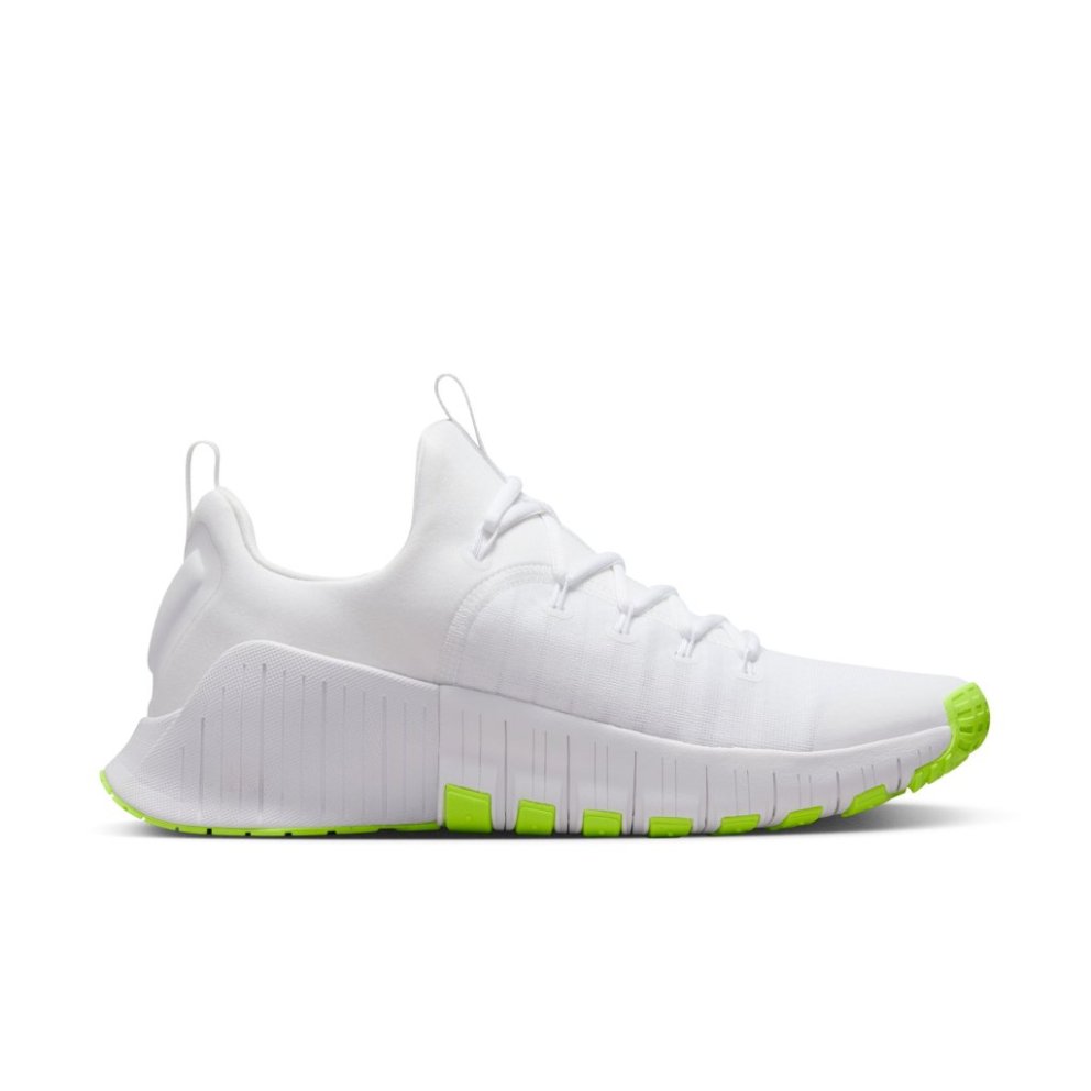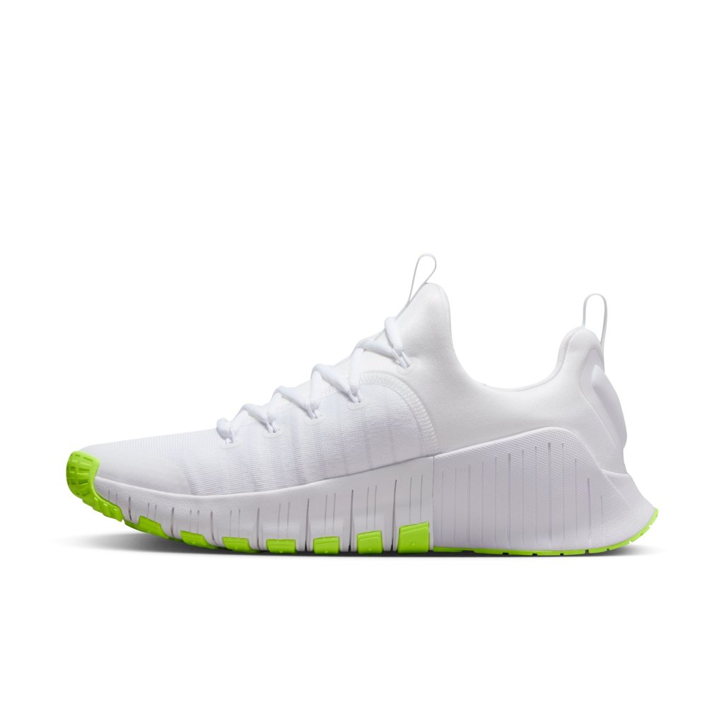 From power lifts to ladders, from grass blades to grainy platforms, from the turf to the track, your workout has a certain purpose, a specific focus. The Free Metcon 6 supports every grunt, growl and "got it!" We added even more forefoot flexibility to our most adaptable trainer and reinforced the heel with extra foam. That means more freedom for dynamic movements during plyos and cardio classes, plus the stable base you need for weights. Flexibility: High: The more flexibility you have in the midsole and outsole, the more you can move naturally. We laser-siped the outsole for better flexibility, whether you're jumping, planking or powering through plyometrics. We also rounded the big-toe side of the forefoot for better agility and quickness when making sudden movements. Stability: High: The more supportive the shoe, the more stability it can give to your stance. A combination of tuned support and intentionally placed cushioning helps you feel secure with every step. We added more foam in the heel for improved stability when digging deep for another rep. Cushioning: high: The more cushioning that you have underfoot, the more comfortable your workout can be. Cushioning helps soften the impact as your feet hit the ground. Laser-siped foam in the forefoot and midsole offers comfort. Breathable upper: The upper is made from breathable, supportive engineered mesh with built-in stretch where needed, like lunging, squatting and jumping. Secure fit: Flywire cables give you a dynamic fit and help keep you secure during your workout. More benefits: