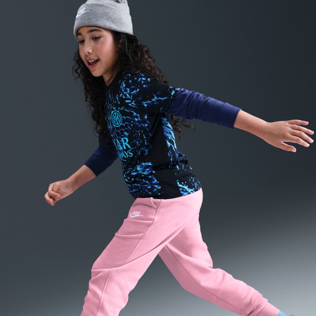 Haltu þér notalegum og þægilegum í Club Fleece. Létt flísefnið er slétt að utan og mjúkburstað að innan og er fullkomið sem aukalag þegar þú þarft smá auka hlýju. Frá frímínútum yfir á æfingar eru þessar jogger-buxur frábær kostur til að halda þér í leiknum. Uppfært stærðarkerfi leggur áherslu á snið frekar en kyn, svo hvert barn geti leikið á sinn hátt. Skásettir vasar gera auðvelt að geyma dótið þitt og snúa aftur í leikinn, á meðan fljótleg snúra í mittisbandi gerir þér kleift að stilla sniðið á