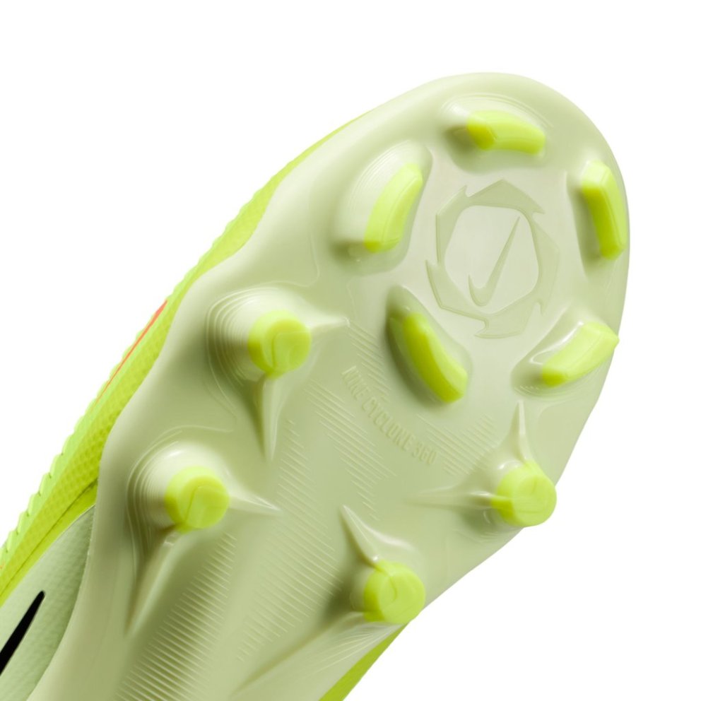 Settu ótta í andstæðingana með Nike United Jr. Phantom 6 Pro. Skórinn er hannaður fyrir leikmenn sem sækja af banvænni nákvæmni, líkt og Sophia Wilson og Deyna Castellanos, og skerpa leikinn með frábæru gripi og nákvæmni þökk sé VNMSkin og Flyknit efnum. Bakvið hönnunina: Nike United Nike United safnið heiðrar afar nákvæma og ógnvekjandi leikmenn á borð við Sophia Wilson og Deyna Castellanos. Litaskreytingar tákna hvernig þær beina metnaði sínum í hreina og óstöðvandi snilld. Snerting fyrir hreinar skottilraunir Nike VNMSkin er gripmikið efni sem þekur skotsvæði takkaskósins. Í samspili við Flyknit veitir það framúrskarandi boltastjórn við spyrnur, sendingar og skot. Grip fyrir völlinn Cyclone 360 hringlaga takkamynstur,