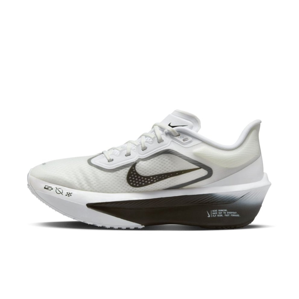 The Zoom Fly 6 is with you every step of your run. Lighter than the Zoom Fly 5, its responsive ZoomX foam adds energy return to each stride, while a carbon-fibre plate helps propel you to the finishing line. Benefits: