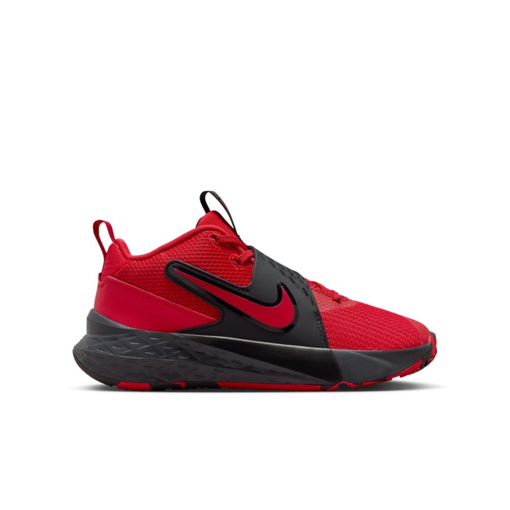 The Nike Team Hustle D is made for kids who love to hoop. Its strap closure system makes it easy to secure your fit fast. Underfoot, plush foam and a durable rubber outsole give you the cushioning and grip you need to confidently play on outdoor courts. Easy to secure Classic laces pair with a hook-and-loop strap to help give you a secure, contained fit. We added oversized loops to the tongue and heel to help make these easy to pull on. Tarmac ready A flexible, full-length rubber outsole offers the durability and grip you need to bring your best on outdoor courts and playgrounds. Plus, soft foam in the midsole cushions every step and jump you take. Keep Your Cool The breathable mesh in the upper helps keep your feet from overheating. Product details: