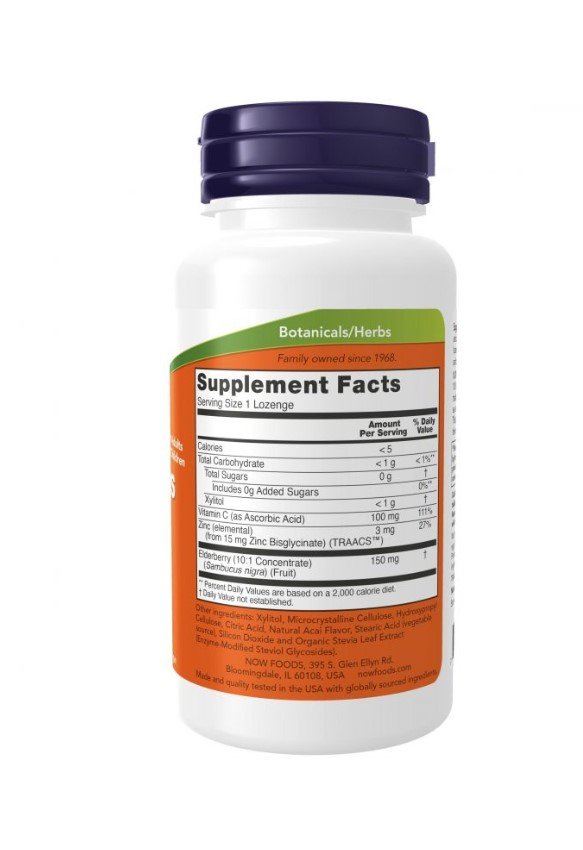 Nafn Now Sambucus Zinc-C 60 tuggutöflur