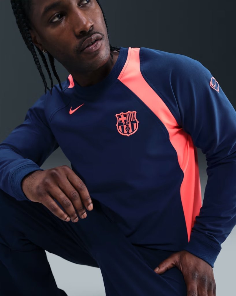 This FC Barcelona top pairs the early-2000s energy of Nike’s iconic soccer kits with functional style. Curving, asymmetrical lines with a water-repellent shell create a look that’s game ready in the stands and the streets. Behind the Design: Total 90 Designed to perform through all 90 minutes of a match, the Total 90 collection became one of the iconic kits of the 2000s thanks to its curving lines, asymmetric designs and mixed materials. This rerelease brings that same energy for a new generation of players and fans. Product Details: