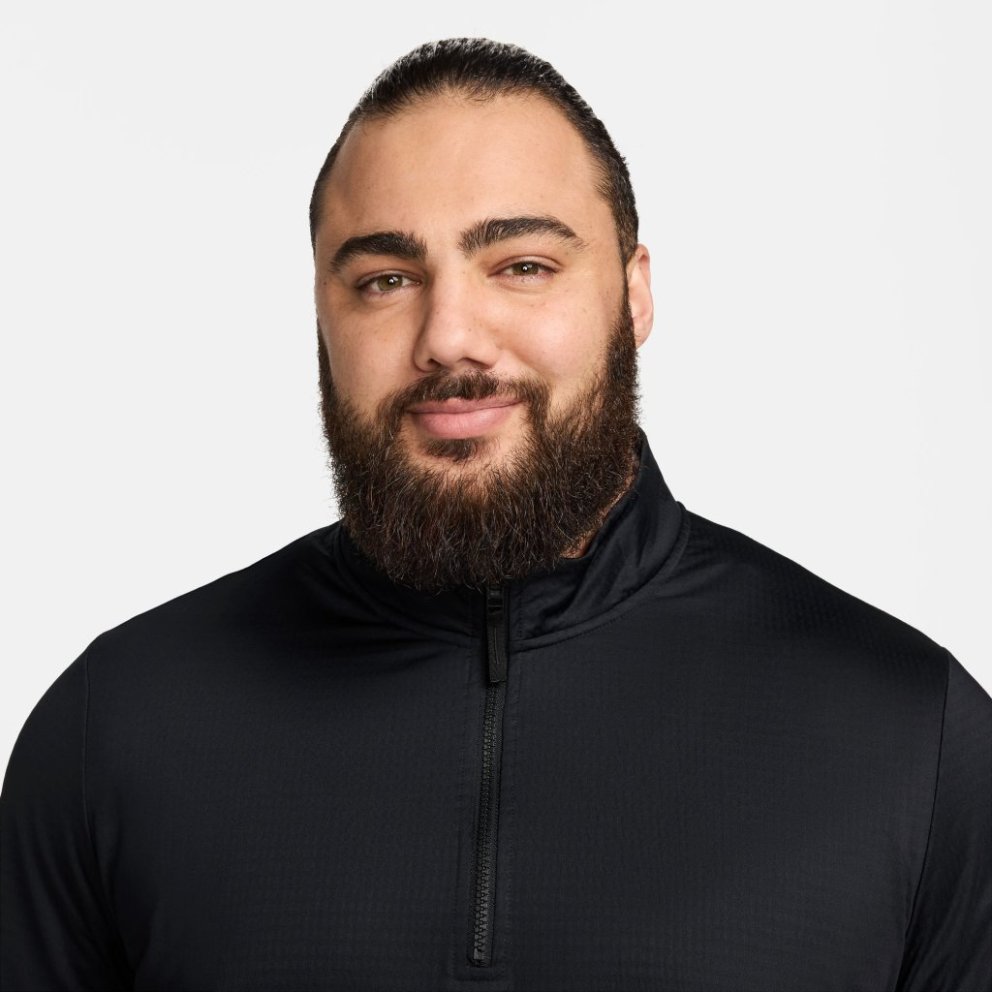 No matter the tee time, stay warm in this Nike Victory top. It's light and stretchy with a relaxed fit to help you swing free and easy. Whether you're hitting a large bucket of balls or going the full 18, sweat-wicking fabric helps you stay dry with every shot.