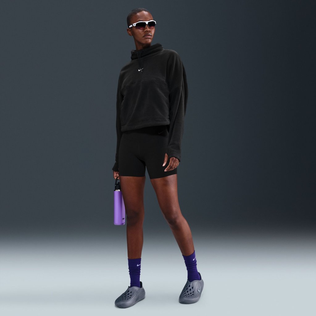 Don't let the cold stop your training. Its lightweight fleece is brushed on both sides and elevated with heat-regulating tech. An extended curved hem and spacious fit gives you plenty of coverage as you move through your workout. Benefits:
