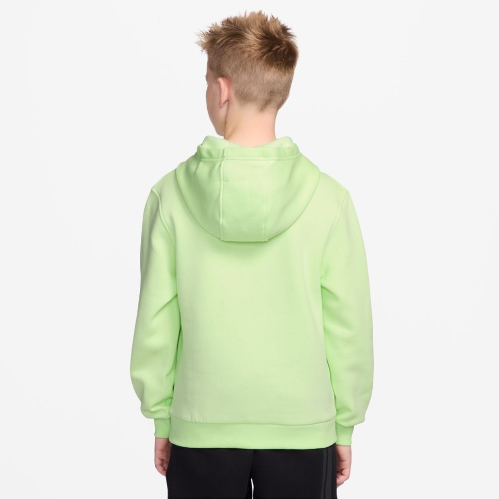 Hvað elskum við við Club Fleece? Það er slétt að utan, mjúkburstað að innan og létt flísefnið er fullkomið sem aukalag þegar þú þarft smá auka hlýju. Nánast töfrandi hefur þessi hettupeysa verið þekkt fyrir að hita upp kaldar frímínútur, taka kuldann úr vetrarboltaleikjum og setja bros á andlit allra sem klæðast henni. Uppfært stærðarkerfi leggur áherslu á snið frekar en kyn, svo hvert barn geti leikið á sinn hátt. Stór vasi að framan býður upp á pláss fyrir snarl og fjársjóði dagsins, á meðan op að framan á hettunni veitir nægt rými til að auðvelda að fara í og úr peysunni.