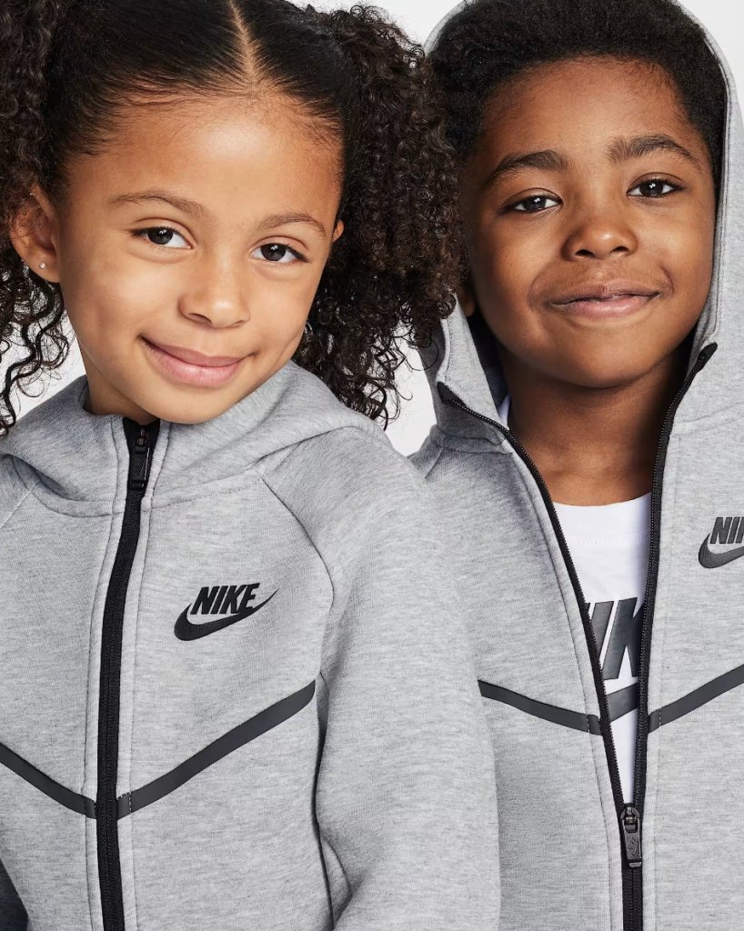 Made of bonded jersey knit fabric, this 2-piece set is inspired by the classic warmup suit. The hoodie has a full-zip closure that makes layering easy, and the matching tapered pants have ribbed cuffs and a stretch waistband for a comfy fit the smallest athletes can play freely in. Pair with any Nike tank or tee for a completed look that will complement their kicks.