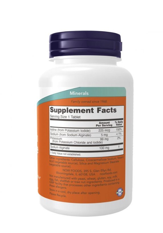 Potassium Iodide (KI) inniheldur bæði joð og kalíum. Kalíum (e. potassium) er nauðsynlegt steinefni fyrir líkamann sem stuðlar að eðlilegri starfsemi taugakerfisins, vöðvastarfsemi og viðhaldi eðlilegs blóðþrýstings. Joð stuðlar að eðlilegri framleiðslu skjaldkirtilshormóna og eðlilegri starfsemi skjaldkirtils.  Vegan. 180 stk.
