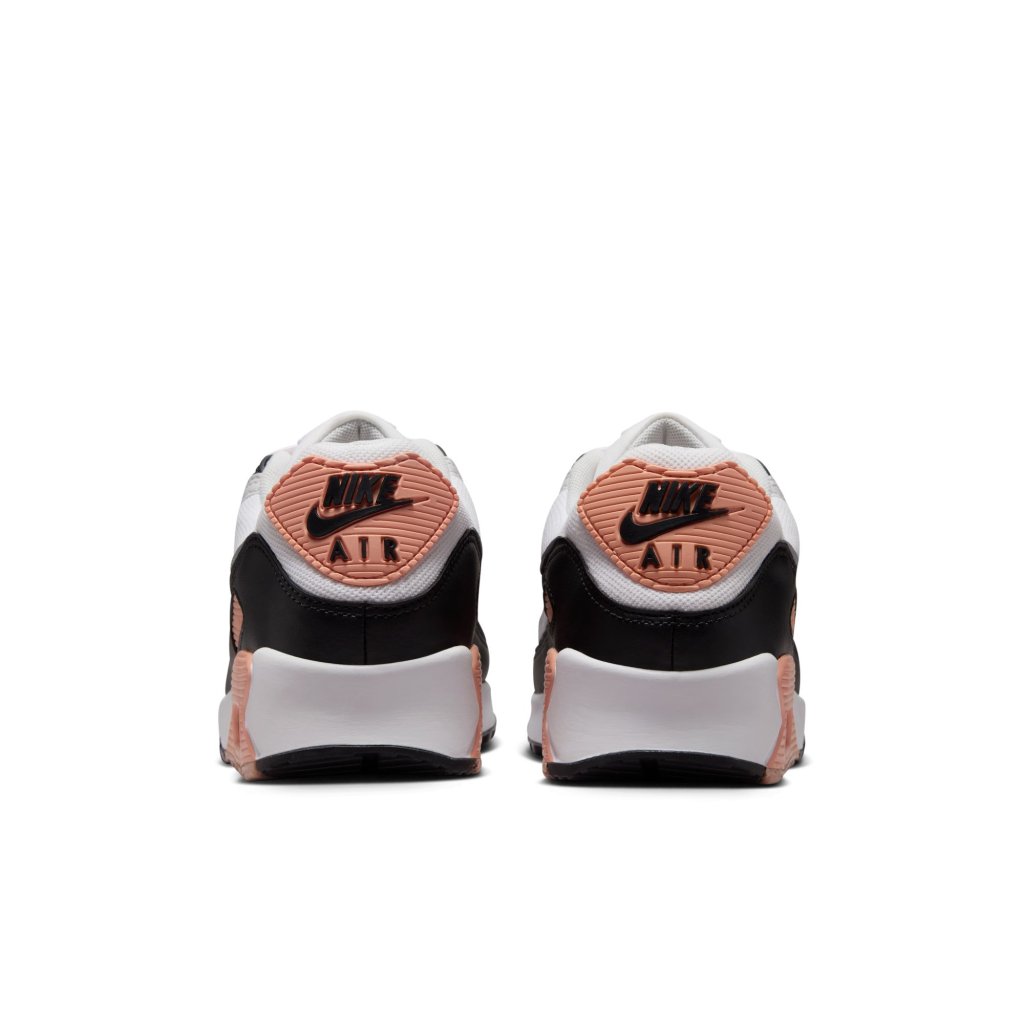 The Nike Air Max 90 is a sneaker legend that has set the standard for style and comfort for 35 years. The latest "Apricot Agate" colour scheme refreshes the classic silhouette, combining pure white with pastel accents. The shoes are distinguished by a gray leather upper, which replaces traditional suede, and a more compact mesh on the toebox in white. Signature apricot agate details adorn the side gusset, heel and branding for a subtle freshness. The whole is set on a sole with the iconic Air Max cushion, guaranteeing a soft step. The icing on the cake is a leather muodguad in contrasting black. The last eyelets for laces and the vamp are also in the same color.