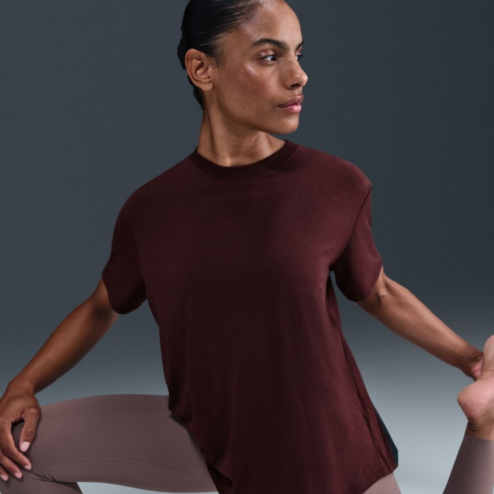Up for a workout or down to chill, this Nike One Relaxed top is ready for whatever you are. Slightly textured, incredibly lightweight jersey fabric dries quickly and drapes you in comfort that goes with any activity. A loose, roomy fit and extended length help keep you covered and cosy from your morning stroll to your evening wind-down—and at all the stops in between. Nike One for all For years, Nike One has been a partner to you on your fitness journey but we recognise that fitness doesn't look—or feel—the same for everyone. Looking for something more tailored and polished? Check out Nike One Fitted cropped tops. Or try a Nike One Classic top for an easy fit that's still sleek, available in a variety of lengths to meet your needs. All-day comfort and versatility A ribbed neckline enhances the favourite-tee feeling and helps keep the top in place while you move. A longer length is easy to tie up and customise for looks that go with everything you do in a day. More benefits Nike Dri-FIT technology moves sweat away from your skin for quicker evaporation, helping you stay dry and comfortable. Curved hem helps keep you covered as you move. Product details: