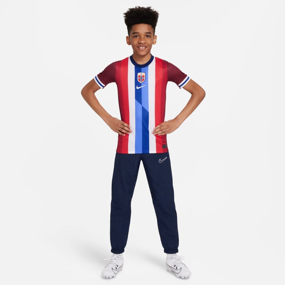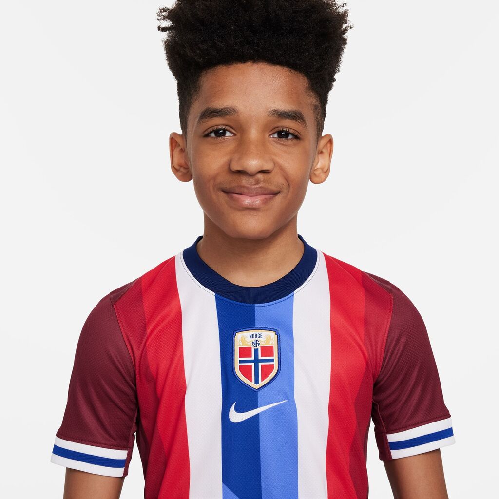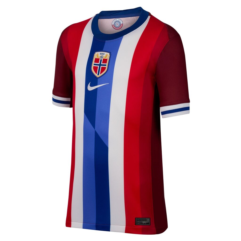 The Norway 2024/25 Home kit is all about the flag. Colours and designs pulled from the national symbol adorn both the outside and inside of the shirt, creating a look that's unmistakably Norwegian. Hidden details and player name and numbers have a custom font design honouring the first king of Norway. Stay dry Nike Dri-FIT technology moves sweat away from your skin for quicker evaporation, helping you stay dry and comfortable. Modelled after the pros Our Stadium collection pairs replica design details with sweat-wicking technology to give you a game-ready look inspired by your favourite team. Product details: