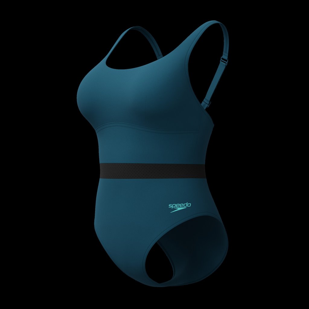 A flattering mesh band visually cinches your waist, while the V-shape back lets you train in comfort. Comfy SHAPE COMPREX fabric smooths and contours. Shaping fabric and supportive seams offer medium bust support. Get more from your swim with ultra-chlorine-resistant LYCRA® XTRA LIFE, which lasts twice as long as standard swimwear fabrics.
