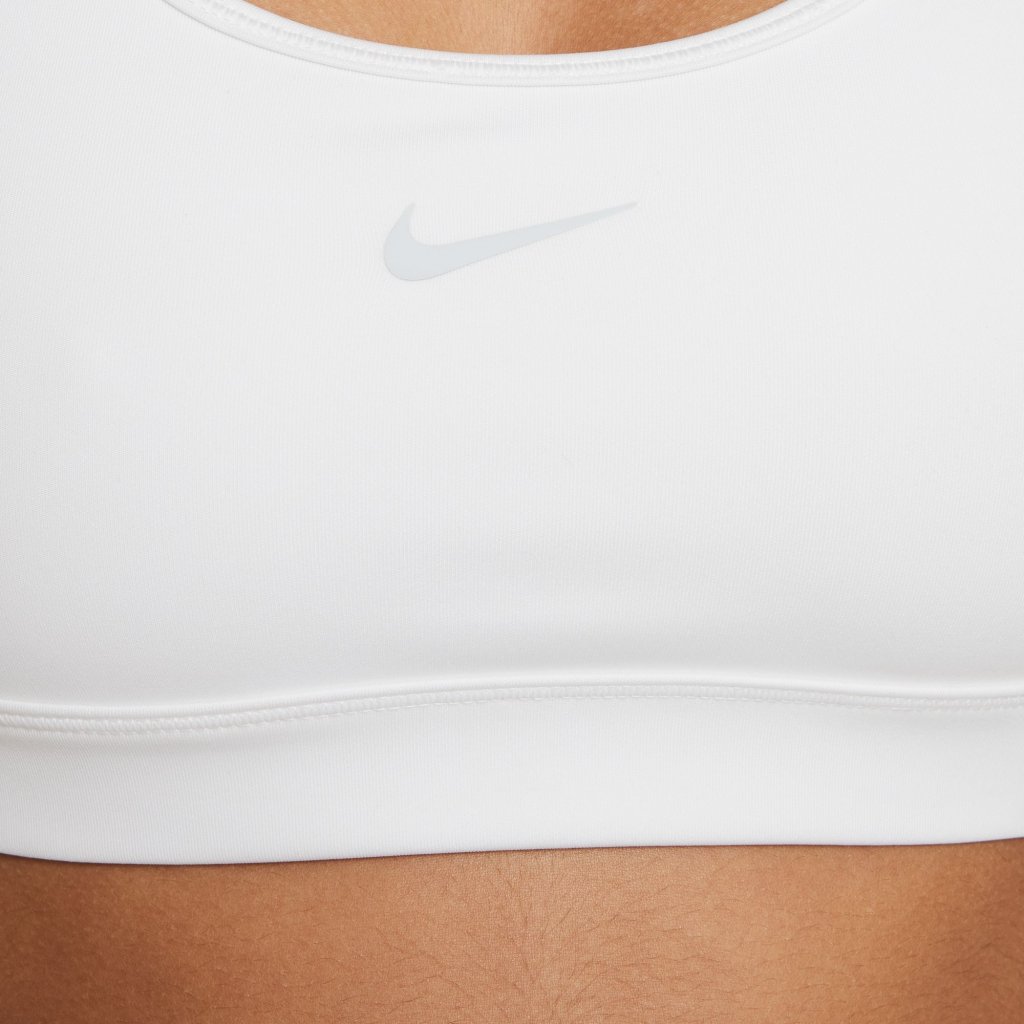 With a snug racerback design, the Nike Swoosh Sports Bra is more than just comfortable—it sends sweat packing. Our lightweight fabric moves sweat away from your body to help you stay dry, cool and focused so you never have to sit a play out. Made for play Wide, comfy straps give you a supportive fit. Nike Dri-FIT technology moves sweat away from your skin for quicker evaporation, helping you stay dry and comfortable. Made for Coverage The two layers of fabric across the front feel soft and supportive while giving you plenty of coverage. Made for Comfort Soft, lightweight fabric stretches to comfortably hug your body while an elastic band provides a snug fit. A classic racerback design allows for easy movement while flat and smooth seams feel comfortable under your outfit. Product details:
