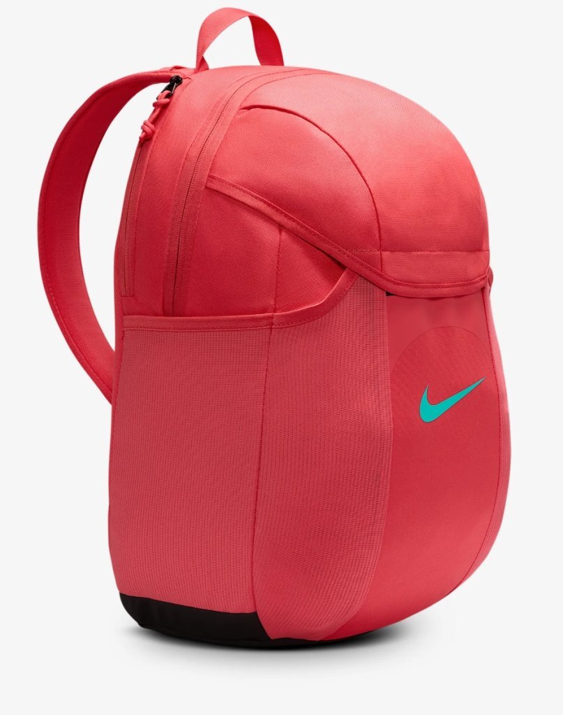 The weather doesn't keep you from training, and it shouldn't keep you from having dry gear. Whether resting on the ground or hanging on a fence, this backpack handles less-than-ideal game and training conditions—and holds your ball in the front pocket. The rain fly features Nike Storm-FIT technology to help provide extra coverage from the elements, while mesh on the bag allows breathability and ventilation on those good-weather days. Benefits: