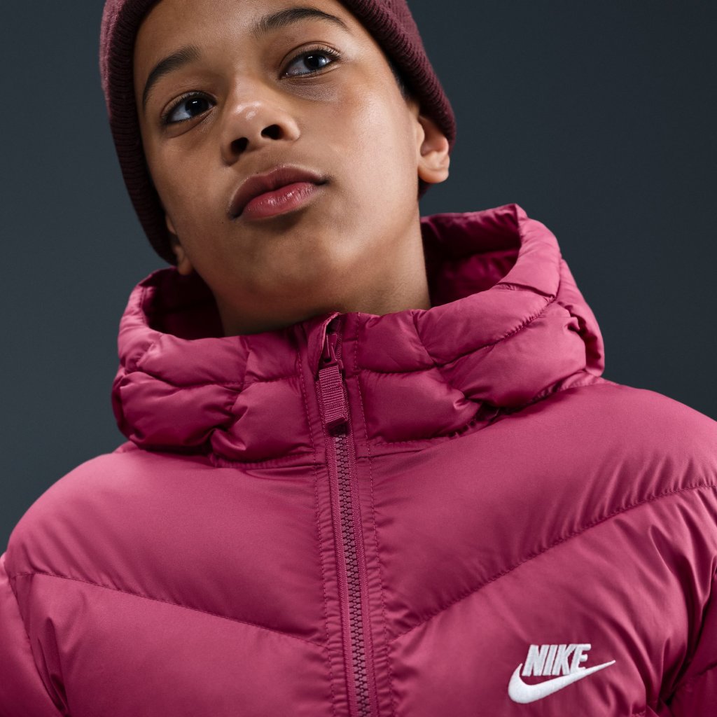 A chevron pattern on the front of this puffer nods to the Nike Windrunner, one of the first pieces of apparel we ever made.
