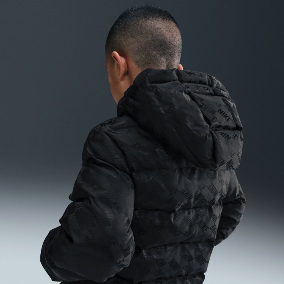 Ramp up the warmth with this puffer. It pairs lightweight synthetic insulation with our Therma-FIT technology to pack in the heat without weighing you down. A loose fit gives you space to layer and move. Stay-Warm Technology Nike Therma-FIT technology helps manage your body's natural heat to help keep you warm in cold-weather conditions. Synthetic fill helps keep you insulated and warm. Rain-ready The woven jacquard shell features a water-repellent finish that helps you stay dry in wet weather. Pull up the hood when you want a bit of added coverage. Windrunner inspired A chevron pattern on the front of this puffer nods to the Nike Windrunner, one of the first pieces of apparel we ever made. Product details: