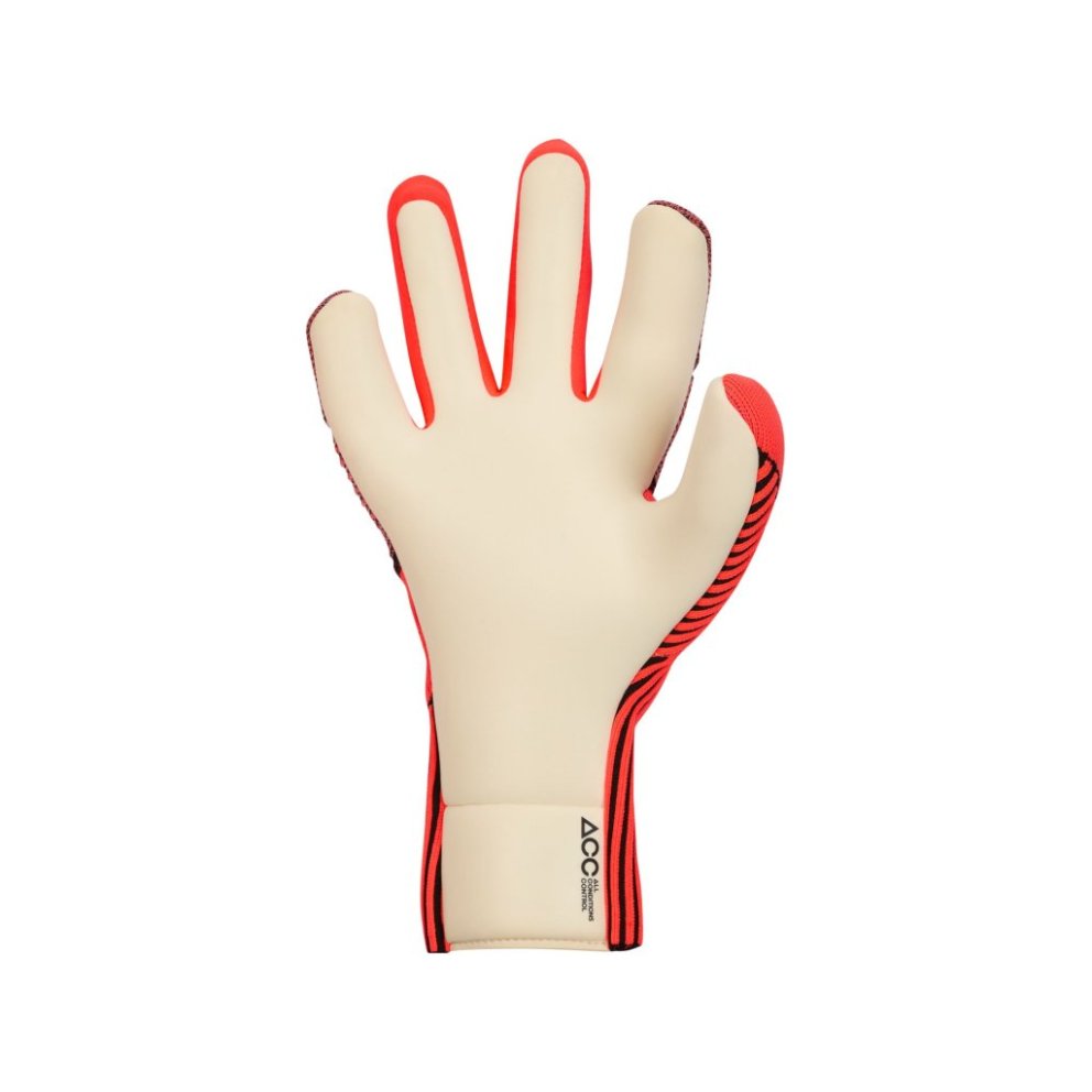 A combination of Gripknit technology and All Conditions Control technology gives you the grippy texture for making all those game-saving plays Dynamic Fit fabric helps keep these gloves snugly in place Nike Gripknit, a sticky texture that provides grip where you need it, gives you the control you need for ultimate precision All Conditions Control (ACC) technology adds a grippy texture in both wet and dry conditions Integrated punch pad allows for greater flexibility and control when punching the ball Negative cut Latex 70%, Polyester 24%, Polyurethane 1%, Nylon 5%