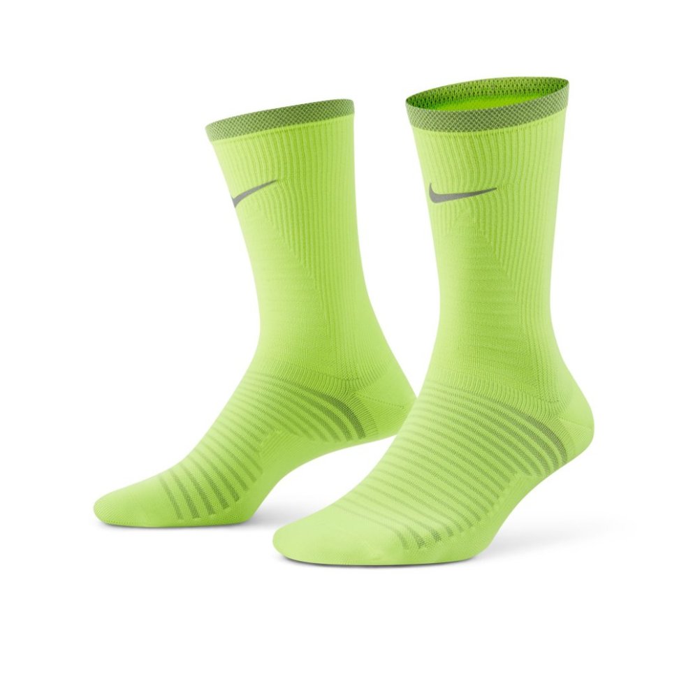 LIGHTWEIGHT SUPPORT. BAREFOOT FEEL. Designed for the runner looking for a barefoot feel, the Nike Spark Lightweight Socks feature sweat-wicking technology and mesh fabric for a dry and cool experience. Extra yarn in the footbed and ankle provide subtle micro cushioning, giving you soft support with every step. Reflective updates have been placed in key areas, making this sock stand out from previous versions. Reflective Miles We've updated our Spark Lightweight Socks with reflectivity around the collar. Reflective yarns are also integrated into the mesh pattern at the top of the foot. Light On Your Feet Lightweight fabric gives you a "barefoot" feel. More yarn in the footbed and ankle deliver micro cushioning where you need it. Breathable Where You Need It Mesh at the top of the foot provides optimal ventilation. A striped pattern across the foot indicated where the mesh is placed. More Benefits:
