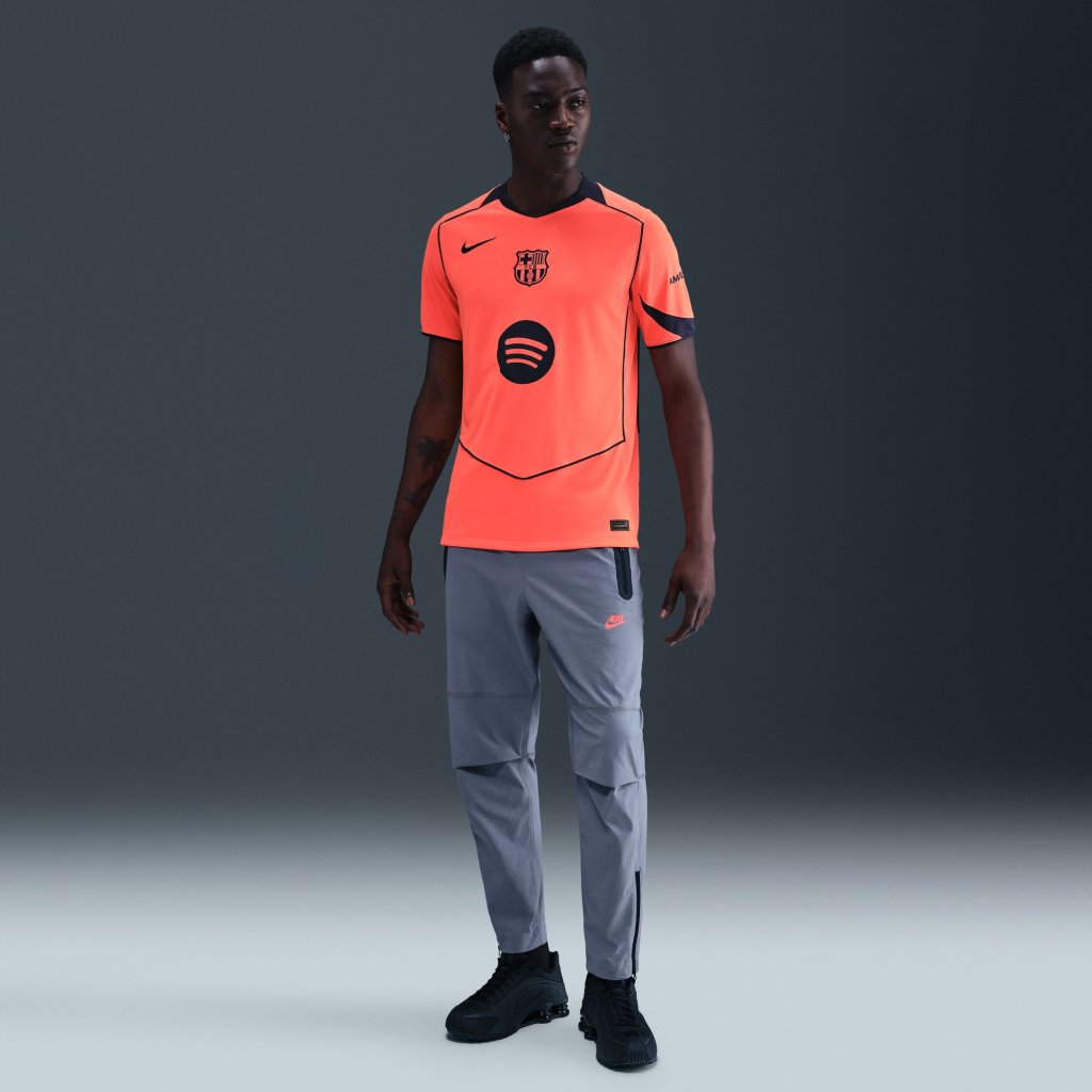 21 years after its debut, Nike Total 90 is making its way back to the world stage. Channeling the energy of the early-2000s, this jersey uses colors from Barcelona's legendary 2009/10 squad and curving design lines to bring the iconic collection to a new era of stars. Behind the Design: Total 90 Designed to perform through all 90 minutes of a match, the Total 90 collection became one of the iconic kits of the 2000s thanks to its curving lines, asymmetric designs and mixed materials. This rerelease brings that same energy for a new generation of players and fans. Inspired by the Pros Our Stadium collection pairs replica design details with sweat-wicking technology to give you a game-ready look inspired by your favorite team. Stay Dry Nike Dri-FIT technology moves sweat away from your skin for quicker evaporation, helping you stay dry and comfortable. Product Details: