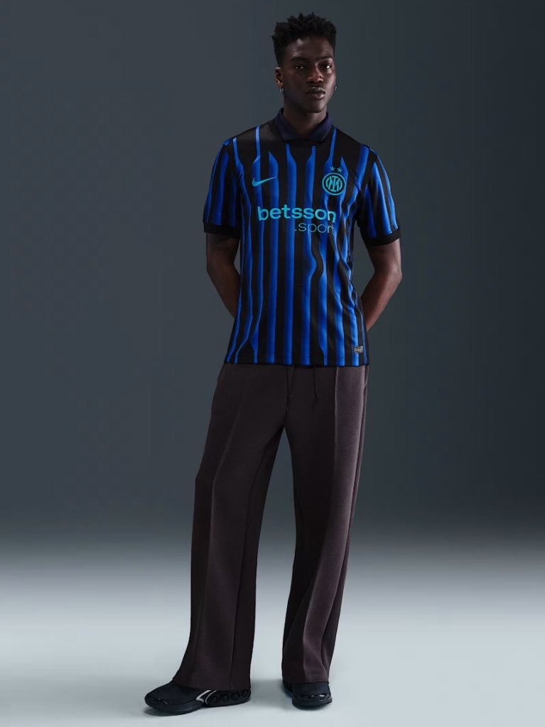 Rooted in tradition. Motivated by progression. Inter Milan's 2025/26 home kit honours its club and city as epicentres of innovation. The black base is accented with an artistic "Inter" script that was inspired by futuristic light installations from Milan's world-famous design week.