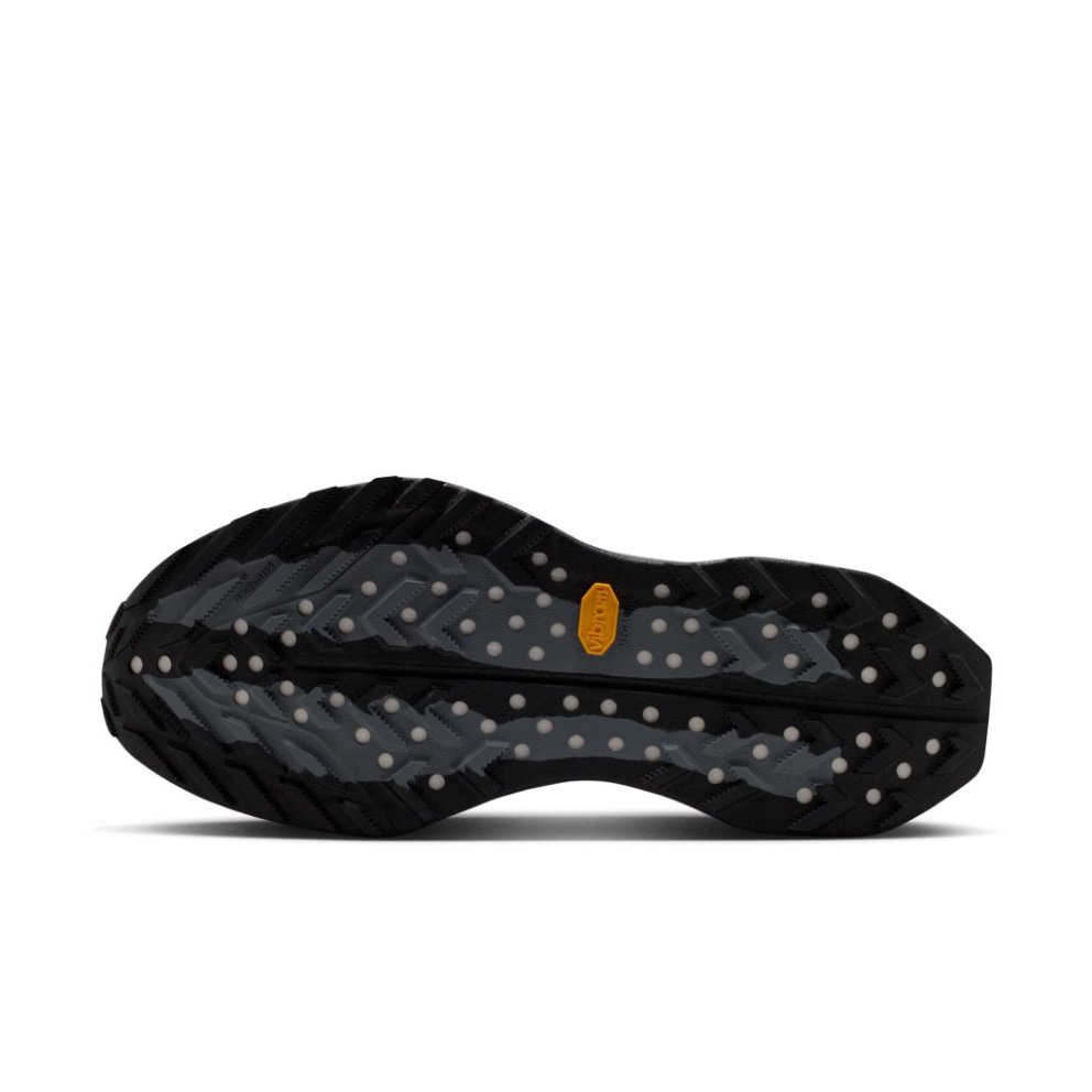 Ultralight foam and enhanced grip fuel your trail speed. The Ultrafly Trail takes what you love about the original and refines it, so you can go the distance. The springy ZoomX foam is more responsive and the full-length carbon plate is softer for a smooth ride. The outsole helps reduce weight while maintaining enhanced grip as the miles pile up. ZoomX foam Ultra-responsive ZoomX foam midsole delivers Nike's highest energy return with a stable feel for the trail. The foam is 'unwrapped' in the heel for even better responsiveness. Breathable Mesh Upper Don't worry about puddles or streams—the upper is made for water drainage. It's also lightweight, durable and breathable. More flexibility Tackle technical terrain with the full-length carbon-fibre plate. We reduced the stiffness compared to the original Ultrafly for better control on the trails. Enhanced grip Go the distance with Vibram® Megagrip outsole. It's designed to give you durability and enhanced grip on wet terrain. Product Details Weight: approx. 287g (men's UK 9) Heel-to-toe drop: 8.5mm