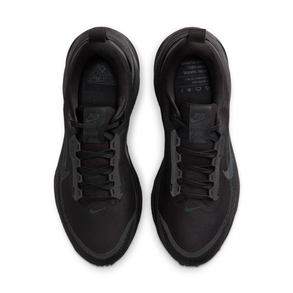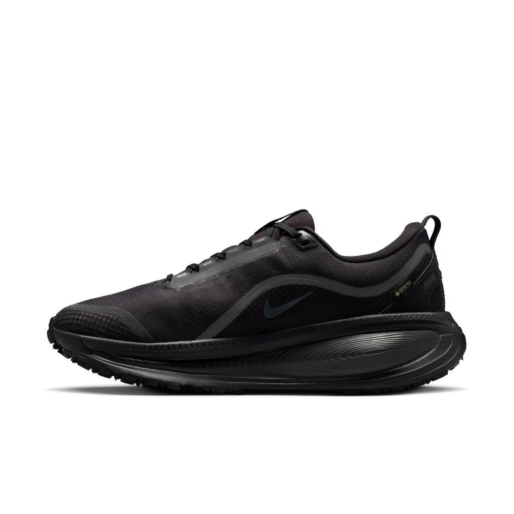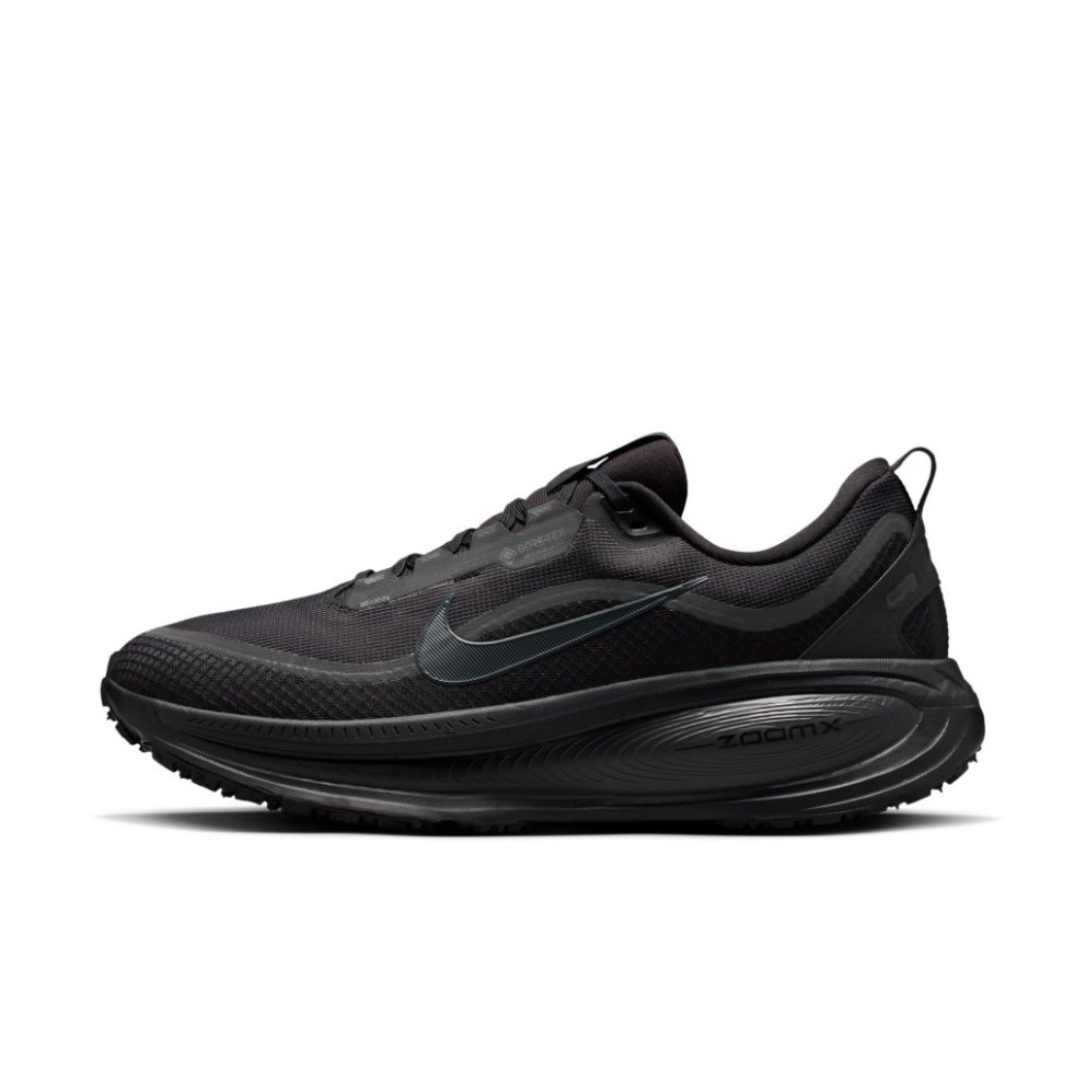Waterproof tech meets maximum cushioning for a comfortable wet-weather ride. Maximum cushioning in the winterized Vomero 18 delivers a comfortable ride for rainy road runs. Experience optimal comfort with lightweight ZoomX foam stacked on top of responsive ReactX foam in the midsole. Plus, a waterproof GORE-TEX upper and reflective details throughout help you comfortably take on the elements. Rain-Ready Upper Waterproof GORE-TEX lining and technical mesh upper keep your feet dry. Dual-Density Midsole We stacked ZoomX foam on top of ReactX foam for a soft, comfortable ride. Storm-Tread Outsole The Storm-Tread outsole provides traction and grip in wet, slippery conditions. What’s New?: Waterproof GORE-TEX liner and mesh upper ZoomX foam stacked on top of ReactX foam Higher stack height compared to Vomero 17 13% more responsive than previous React technology Product Details: Reflective details on upper Not intended for use as Personal Protective Equipment (PPE) Weight: Approx. 329g/9 oz (Men's US 10) Heel-to-toe drop: 10mm