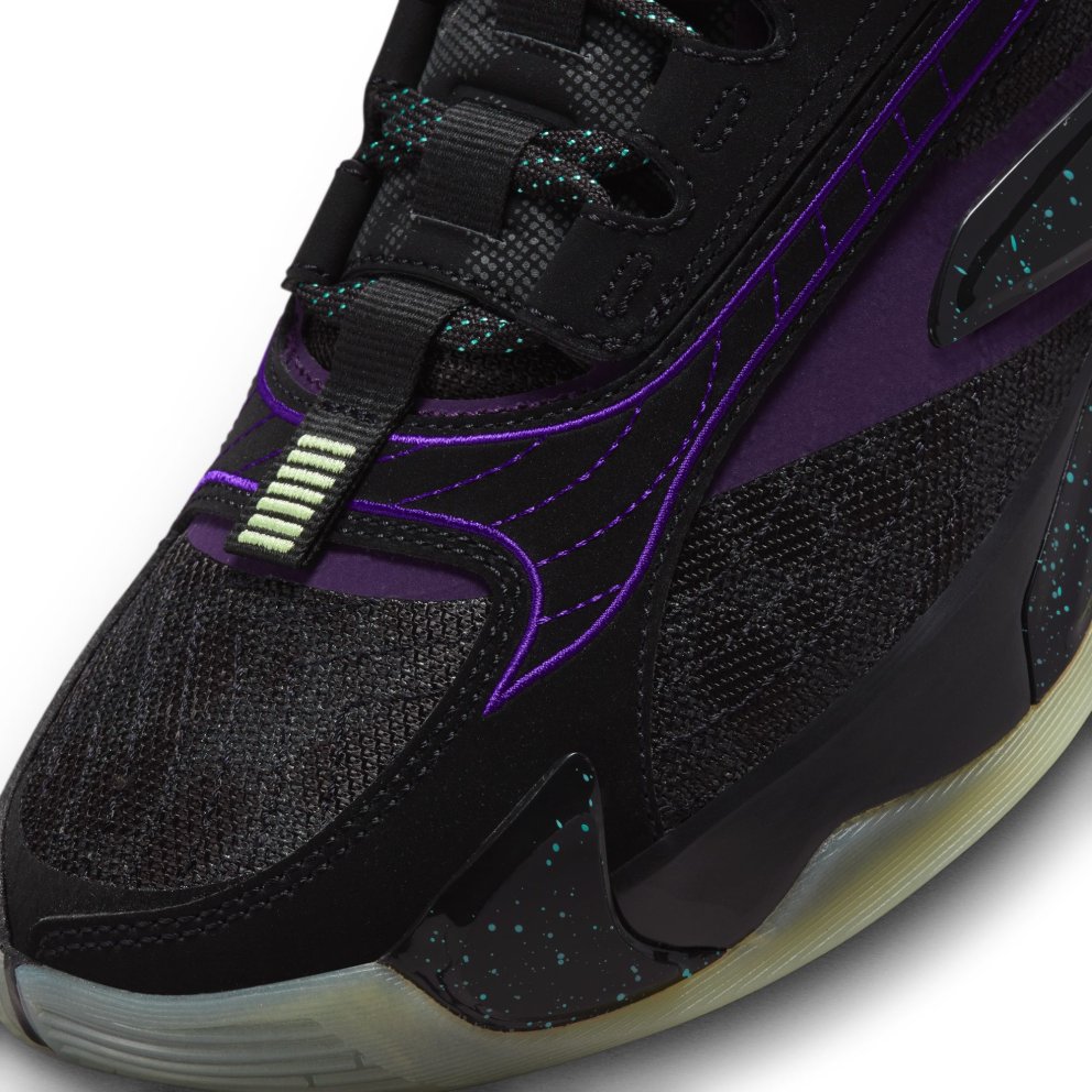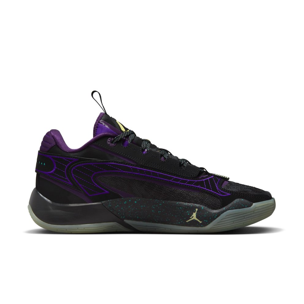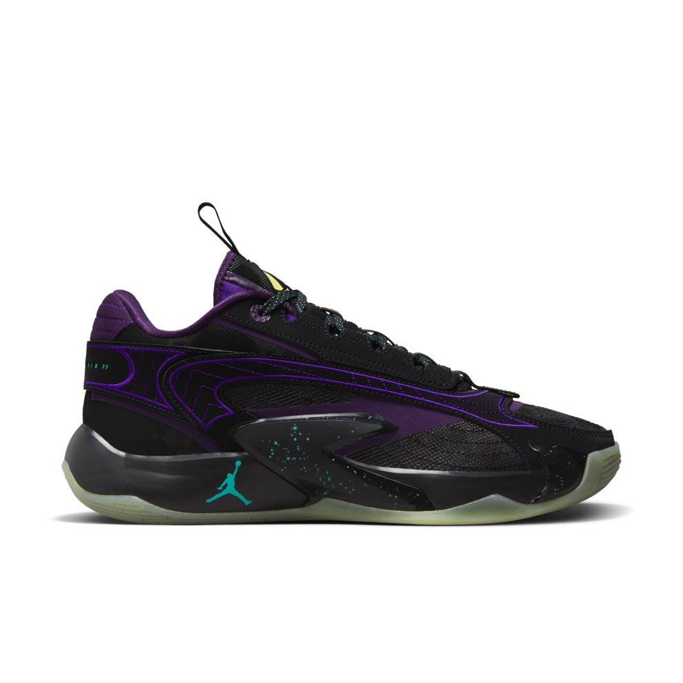While Luka racks up points in the real world, Luk.AI interacts with fans and refines his own game in the digital world. Brilliant, right? This Luka 2 is inspired by that revolutionary idea. Colours match Luk.AI's outfit in the digital world and glow-in-the-dark elements keep the look sleek-whatever realm you're stepping out in. Cushioned for impact When you're shifting side to side, you need support that's firm-but not rigid. A wedge of cushioning against the medial sidewall helps you bank like a champ, and a thick, moulded insole helps you stay grounded. Last-step efficiency The other aspect of side-to-side movement? Lateral support. To help your quick stops feel secure, we added a strong, flexible plate that runs up the sidewall, complemented by a firm foam carrier. 360 degrees of support A cage wraps around the entire upper for 360-degree connected support. It helps your feet stay securely contained, whichever way you step—or however quickly you stop.