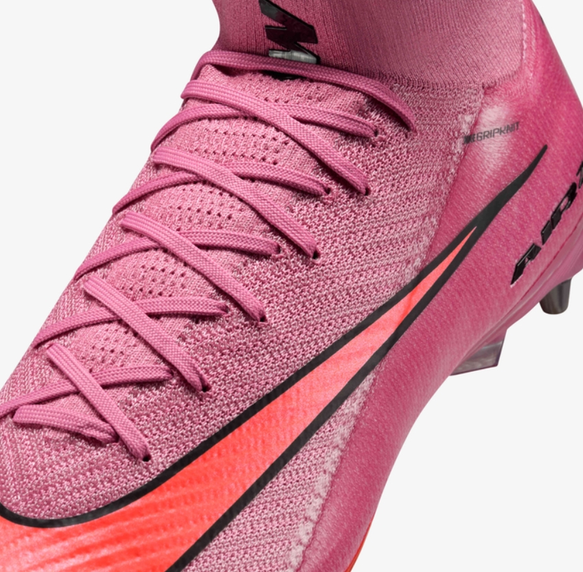 Obsessed with speed? So are the game's biggest stars. That's why we made this Elite boot with an improved 3/4-length Air Zoom unit. It gives you and the sport's fastest players the propulsive feel needed to break through the back line. The result is the most responsive Mercurial we've ever made, because you demand greatness from yourself and your footwear. Exceptional touch Nike Gripknit is a sticky material that provides better touch to the ball. It takes up more surface area, so you have more room to control the ball when dribbling at high speeds or finish a play with a shot on goal. It moulds to the shape of your foot and gives you equal grip in wet or dry conditions for a sculpted, athletics spike-like fit. The micro-moulding texture works with Gripknit to help form to your foot for even better boot-to-ball strikes. Fast traction The wave-like traction pattern is a series of cascading studs, so it engages more surface area of the Air Zoom unit while also providing the appropriate amount of grip. The biggest stud is the same height as our traditional middle studs, so traction is not compromised. We paired the wave-like traction with evolved chevron and blade studs to help you stop when making quick cuts. Snug fit The full Flyknit upper is engineered for speed. AtomKnit, an incredibly lightweight and strong Flyknit, on the sides tapers weight and provides support. The Gripknit, AtomKnit and Flyknit combine to form the thinnest Mercurial upper to date, bringing you closer to the ball and lessening break-in time. The Dynamic Fit collar wraps your ankle in soft, stretchy fabric for a secure feel.