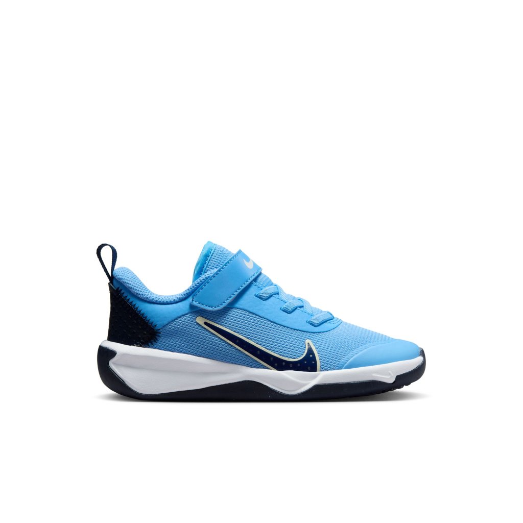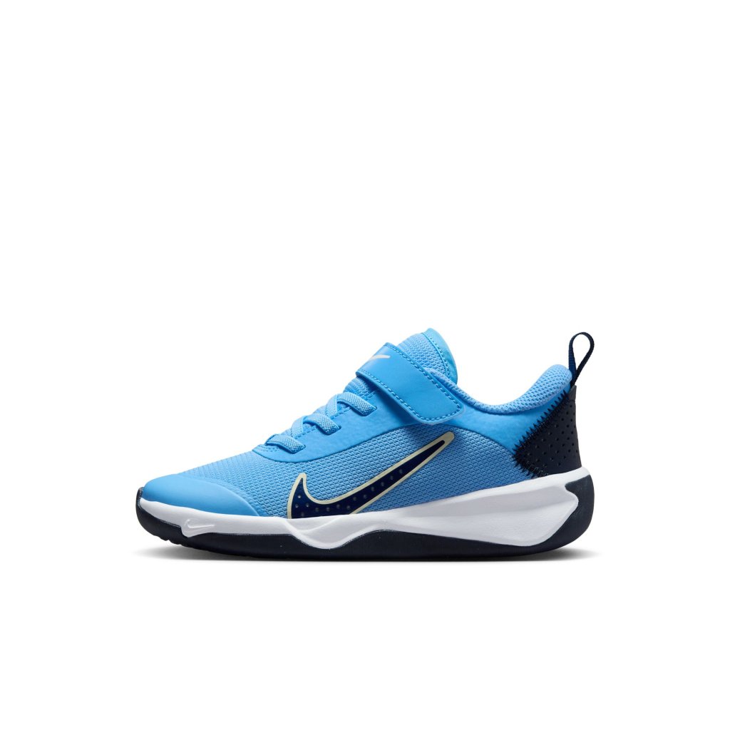 What’s Omni, you ask? It means universal, inclusive and all. Playtime is about freedom and imagination. As the ultimate play shoe, there are no limits when your kiddo pulls these Nikes on. They’re durable for any indoor court surface and lightweight to help make play comfortable.Play-Ready TractionFrom indoor volleyball courts to indoor tennis courts, a non-marking rubber sole provides traction. Plus rubber wraps up the sides of the shoes for extra durability.Move In Any WayWe designed these to be wide around the heel and forefoot so kids have the room they need. Plus, supersoft foam lets little feet sit low to the ground to promote more natural movement.Built for All-Day WearBreathable mesh feels soft and lightweight. A reinforced toe tip helps make these durable for kiddos who drag their toes.More Benefits: