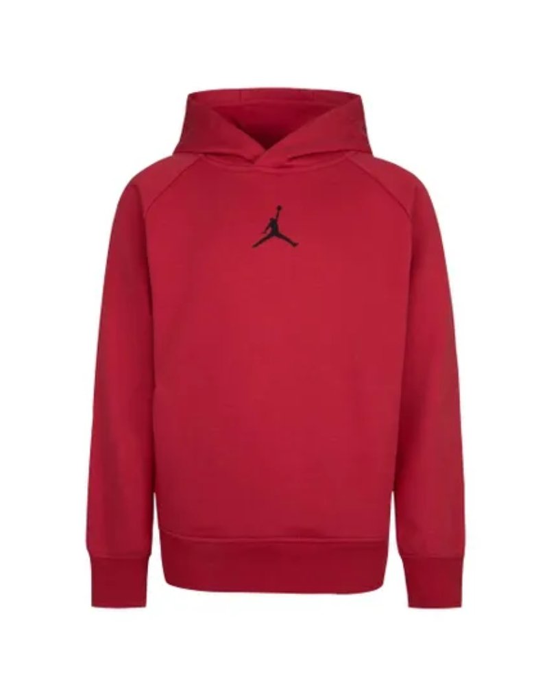 JORDAN - Child's unisex black cotton and polyester sweatshirt with contrasting iconic Jumpman logo on chest. Drawstring-free hood, front pouch pocket and elasticized hems. Gauzed interior. Regular fit and traditional length.