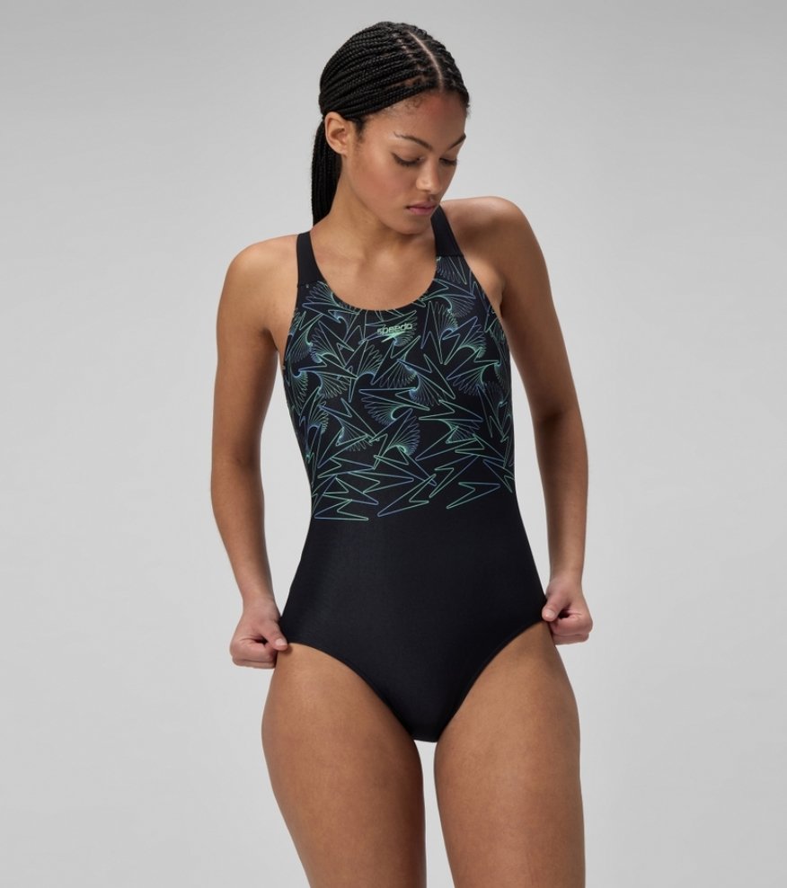 A fresh iteration of our HyperBoom print has landed. Chase your goals in our new HyperBoom Muscleback swimsuit. Flexibility and freedom of movement come as standard with the sporty muscleback design. Be ready to go again in our quick-drying Endurance+ fabric, designed for durability with high chlorine resistance. Body made of 53% Polyester, 47% PBT. Endurance+ fabric: Body made of 53% polyester, 47% pbt polyester yarns with high chlorine resistance and quick dry Muscleback design offers flexibility and freedom of movement, so you can swim in comfort Front lining provides added comfort and modest on bright colours Medium leg Front liner made from 100% polyester