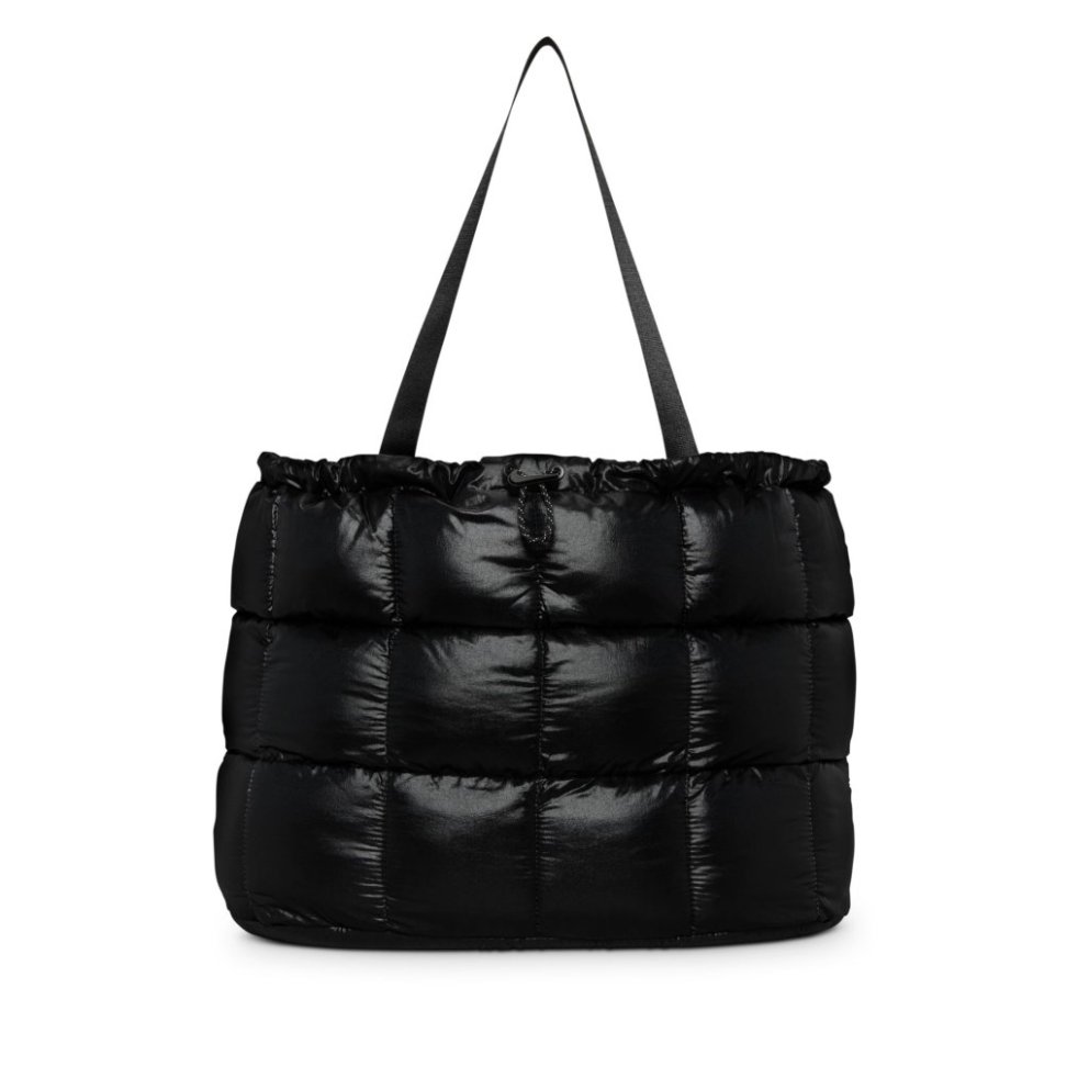 Berðu dótið þitt með stíl. Þessi taska er úr vönduðum efnum og með púfferaðri hönnun sem gefur henni fágað og nútímalegt útlit. Stórt aðalhólf með herðingu og Swoosh-merktri snúru tryggir að eigur þínar haldist öruggar. Innri vasar með rennilás hjálpa þér að halda góðri skipan. Upplýsingar um vöru: Stærð: 61 cm (breidd) x 30 cm (hæð) x 28 cm (dýpt) Aðalefni: 100% nælon *Fóður: 100% pólýester