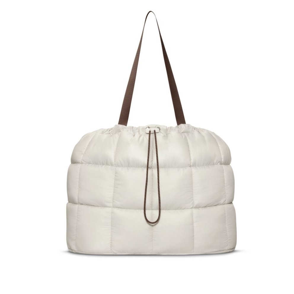 Berðu dótið þitt með stíl. Þessi taska er úr vönduðum efnum og með púfferaðri hönnun sem gefur henni fágað og nútímalegt útlit. Stórt aðalhólf með herðingu og Swoosh-merktri snúru tryggir að eigur þínar haldist öruggar. Innri vasar með rennilás hjálpa þér að halda góðri skipan. Upplýsingar um vöru: *S