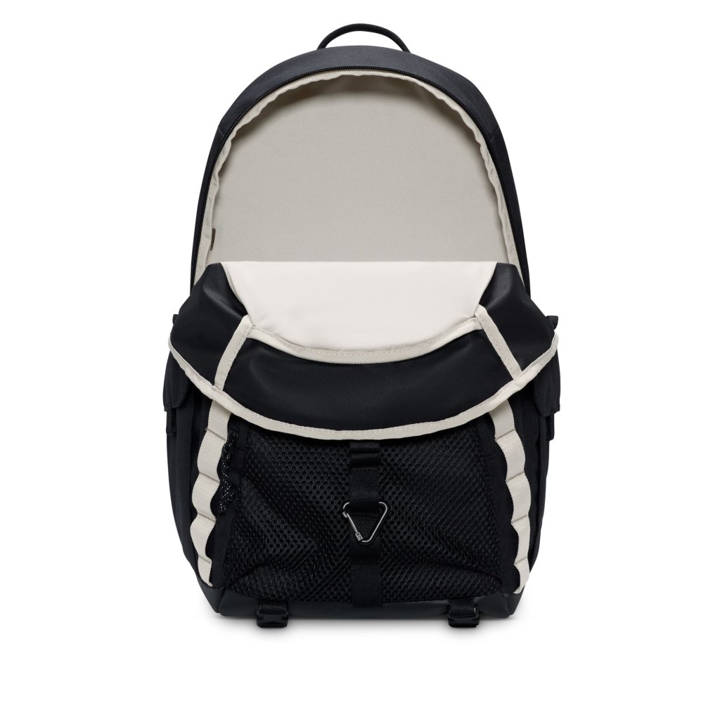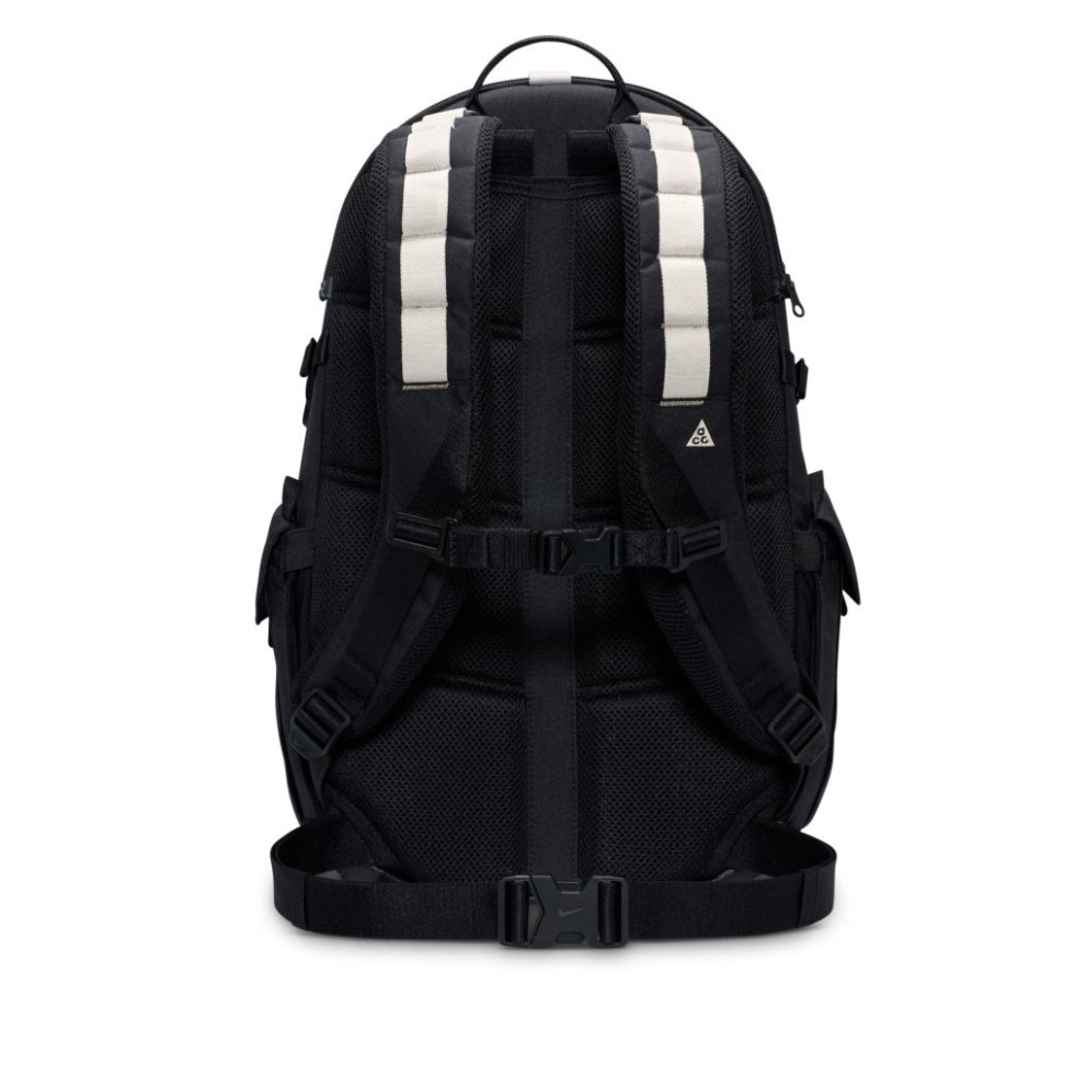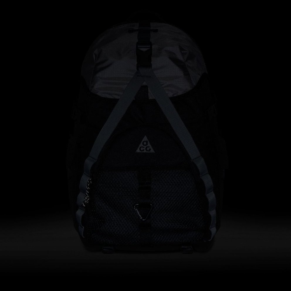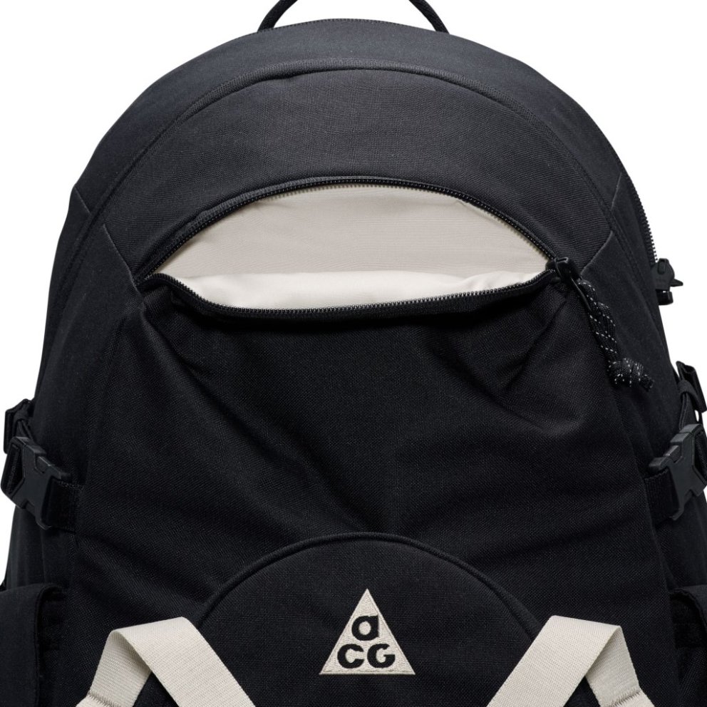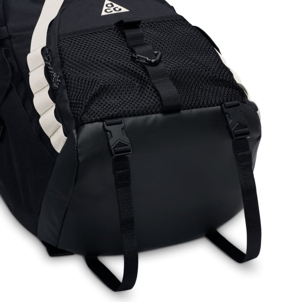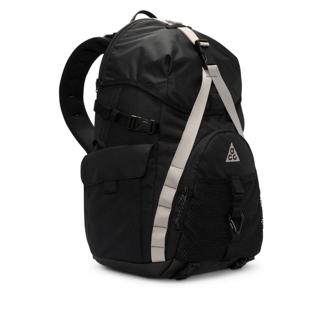 Get the most out of your adventures with the Nike ACG 'DAYMAX' backpack. A large main compartment with front and side pockets offers easy access to small and large items. Adjustable side webbing and front strap provide attachment points for extra gear. Benefits An internal slip pocket fits most laptops. The nylon storm flap provides water resistance. The plush back panel and customisable padded shoulder straps offer a comfortable, personalised fit. Product details 30.5cm W x 51cm H x 23cm D (approx.) ACG-branded carabiner A storable waist strap Body: 81% polyester, 19% nylon. Lining: 100% polyester. Spot clean