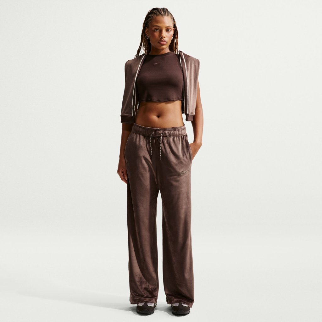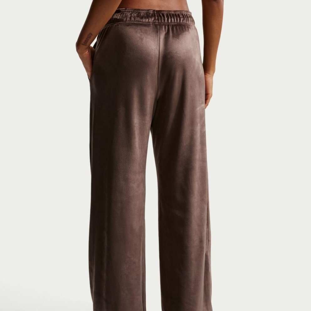 Einstaklega mjúkar buxur úr meðalþykku velúrefni sem fellur fallega og teygist vel með hreyfingum þínum. Vítt snið á skálmum gefur áberandi útlit án þess að fórna þægindum, hvort sem þú ert að slaka á eða stíla buxurnar upp fyrir daginn.
