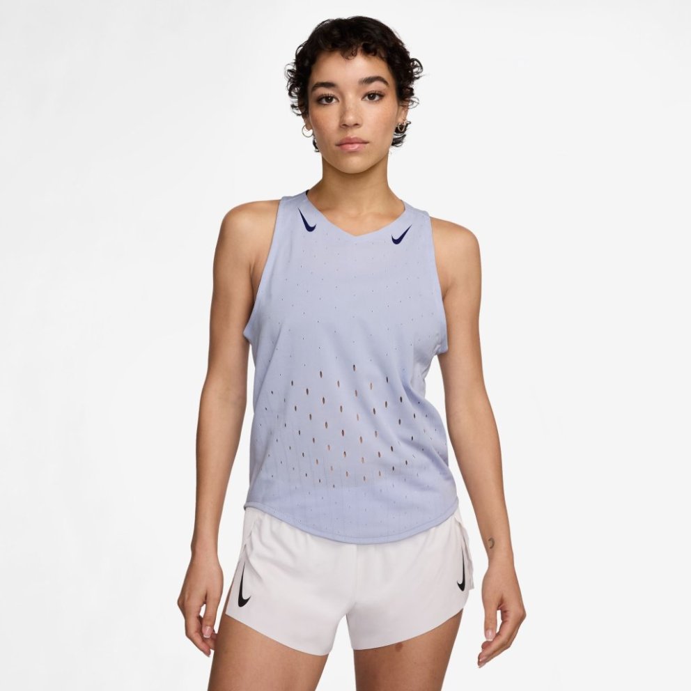 Perform your best with a singlet designed to help you crush your goals. Advanced engineering and moisture-wicking fabric help keep you dry and comfortable as you push the limits. We updated the ventilation features by increasing the number of holes in high-heat zones to invite more airflow, helping you stay cool and focused on your next stride.