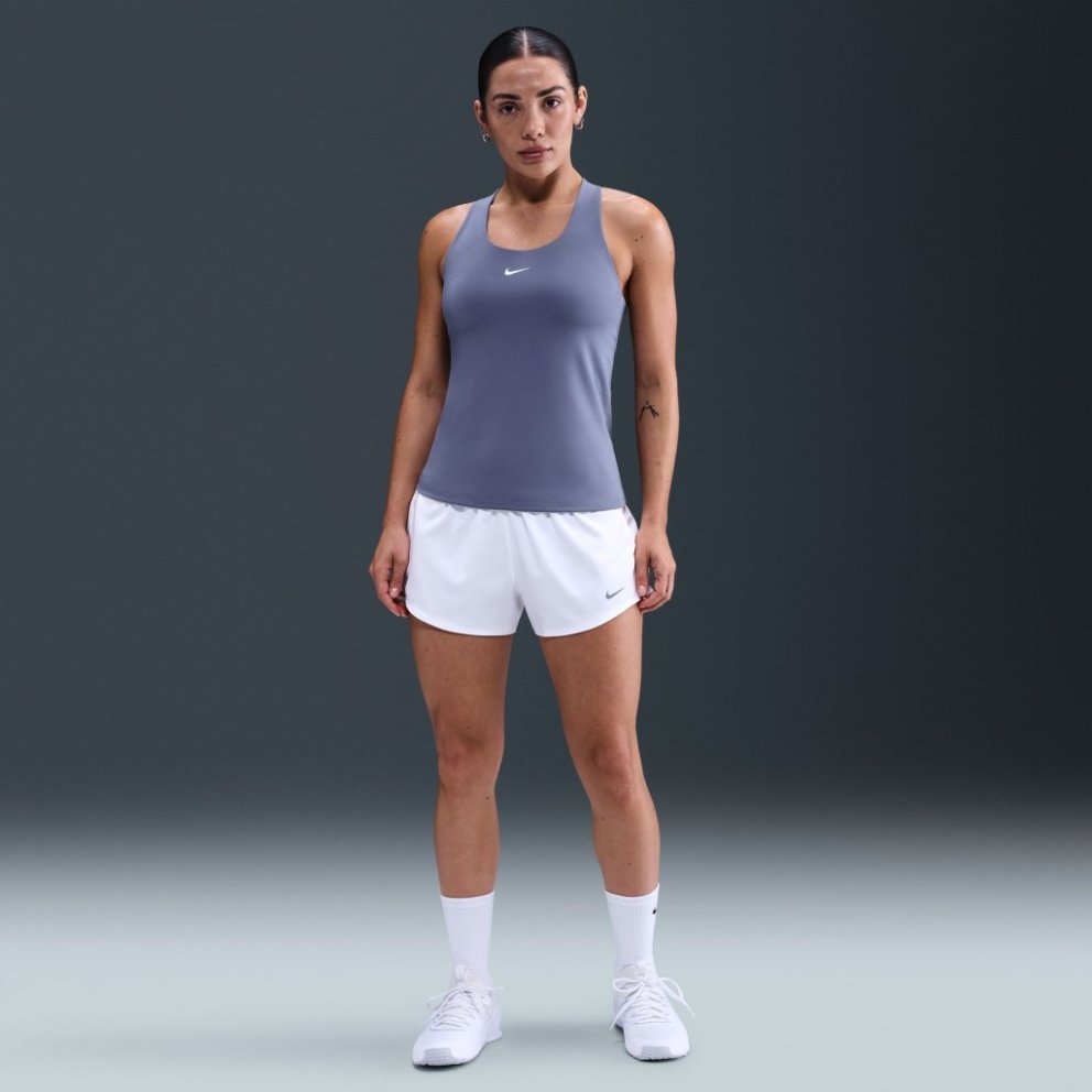 When you want it all, this tank is the pick. The iconic Swoosh bra is built in and smooth, stretchy fabric snuggly holds you, so you're set with everything you need to go from the office to the gym and back again. With sewn-in padding and a racerback silhouette, you can feel confident that nothing is shifting as you go about your day. Built-In Coverage The built-in bra provides medium support through high-stretch, smooth padding. With flexible, breathable mesh inside, you'll feel covered without worrying about sweat. Stay Dry Nike Dri-FIT Technology moves sweat away from your skin for quicker evaporation, helping you stay dry and comfortable.