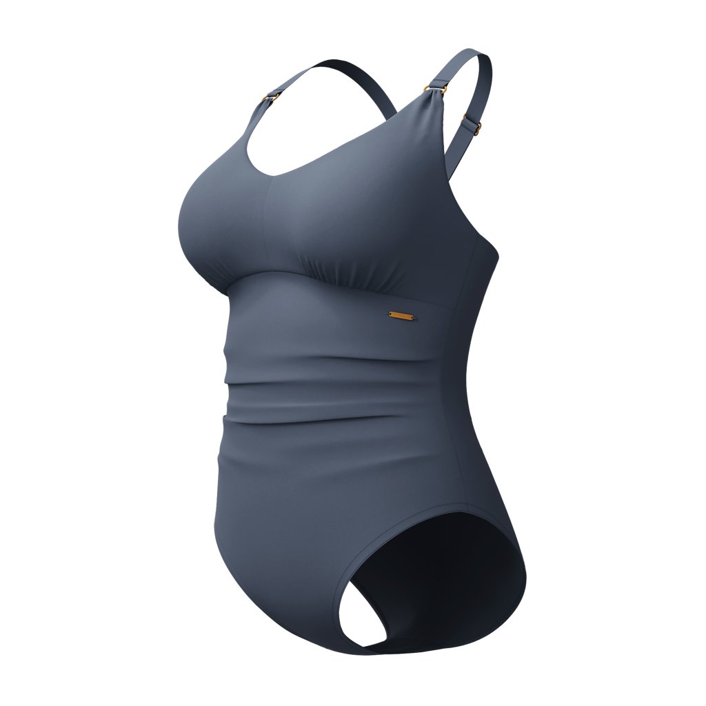 Figure-flattering details make our grey V-neck Swimsuit a holiday go-to. Made from stretchy, shape-retaining fabric, it uses cleverly positioned ruching to flatter your shape. Removable bra pads support and shape the bust. Made from chlorine-resistant fabric, which fits like new for longer with CREORA HighClo. Body made of 74% Nylon, 26% Elastane (Creora® HighClo). Features and Benefits: