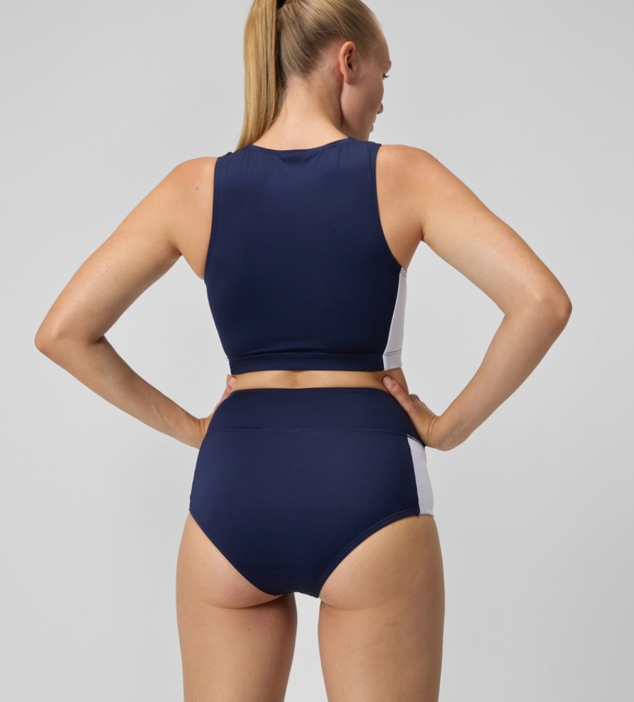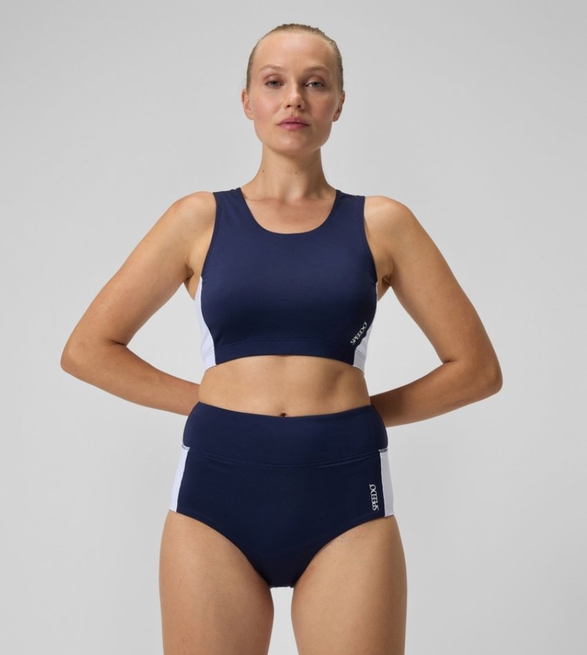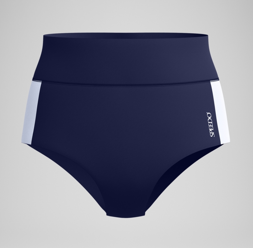 Old-school styling, fresh new vibe. With their retro good looks, our navy colour-block bikini bottoms have an eighties flavour inspired by the Speedo design archives. The mix-and-match design is cut from quick-drying, chlorine-resistant fabric. UPF50+ blocks the burn. Pair with one of our mix-and-match crop tops, available to buy separately. Made From Part Recycled Materials with chlorine resistance and quick dry fabric with a soft hand feel Block the Burn UPF 50+ Fully Lined